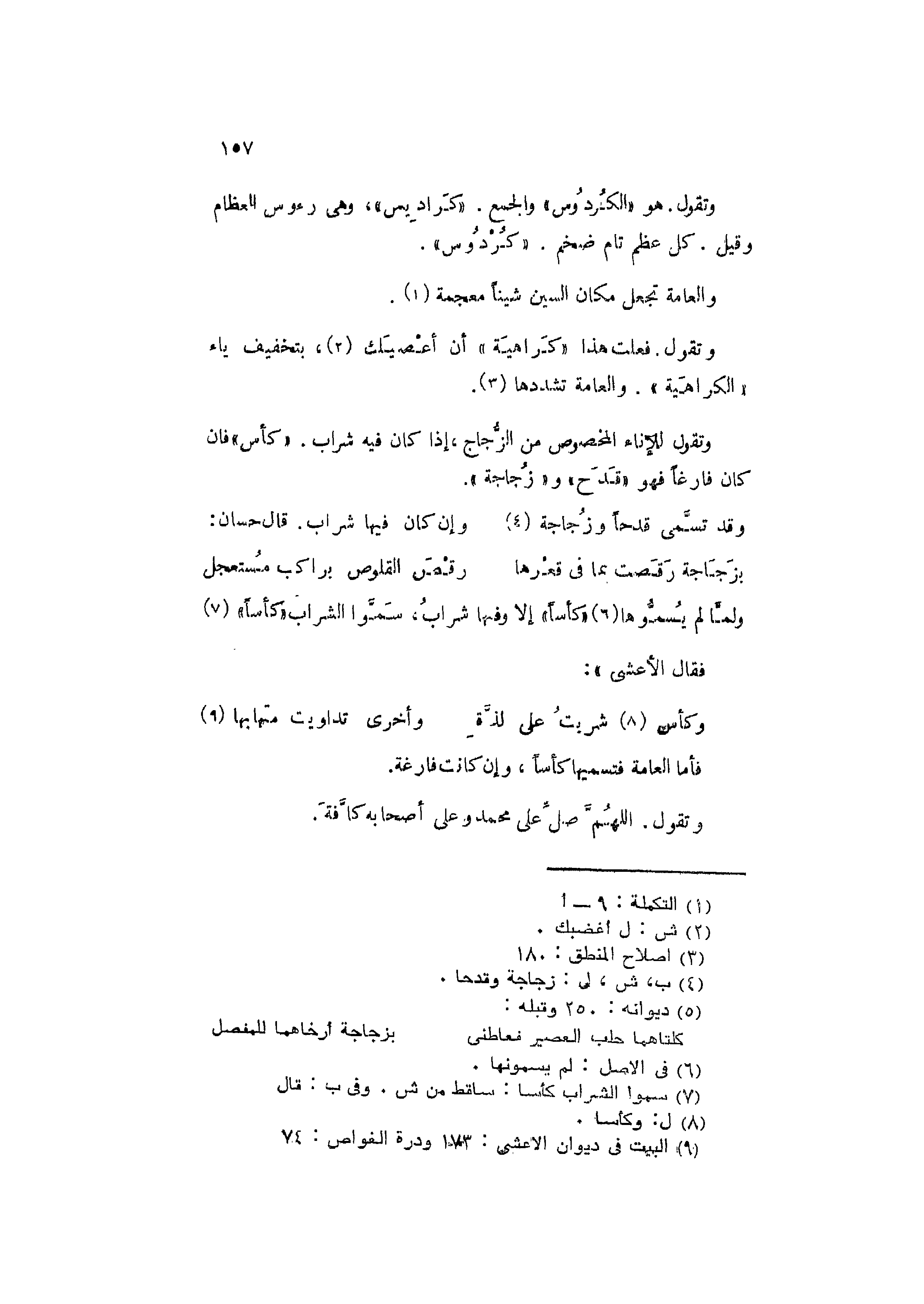 فأما العامة فتسميها كأساً، وإن كانت فارغة.