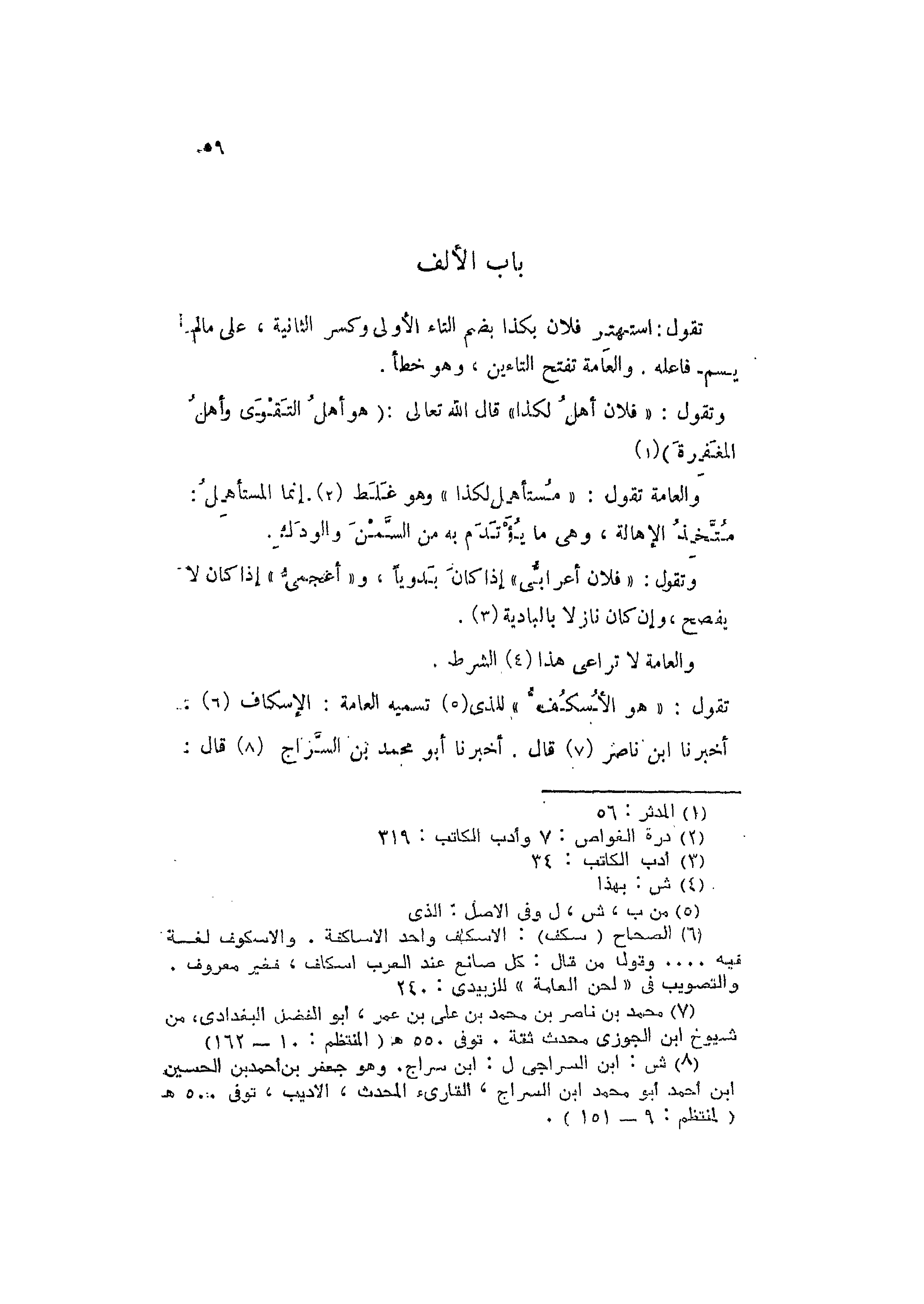 تقول: "هو الأُسكُفُّ" للذي تسميه العامة: الإسكاف.