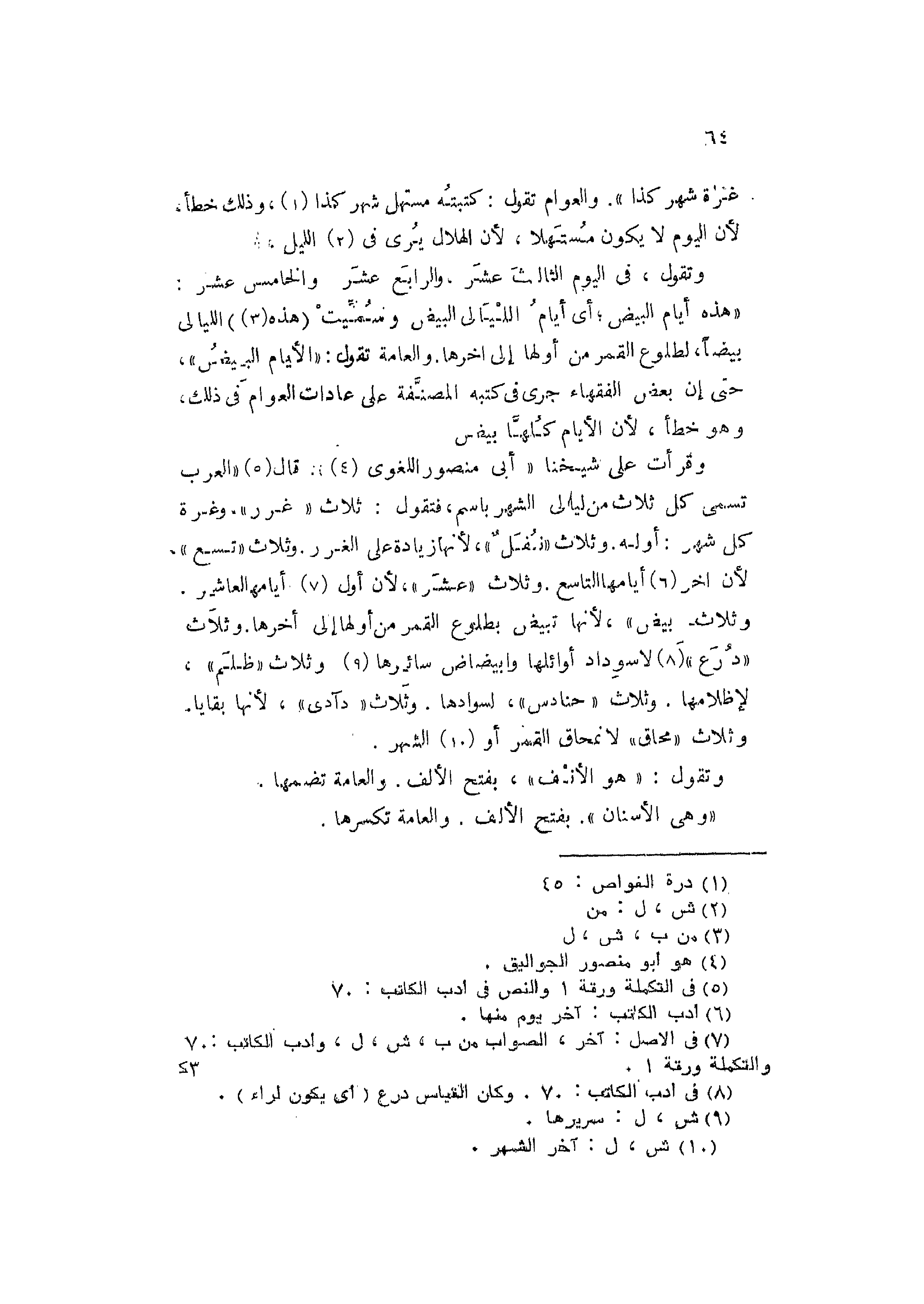 وقرأت على شيخنا "أبي منصور اللغوي". قال: "العرب