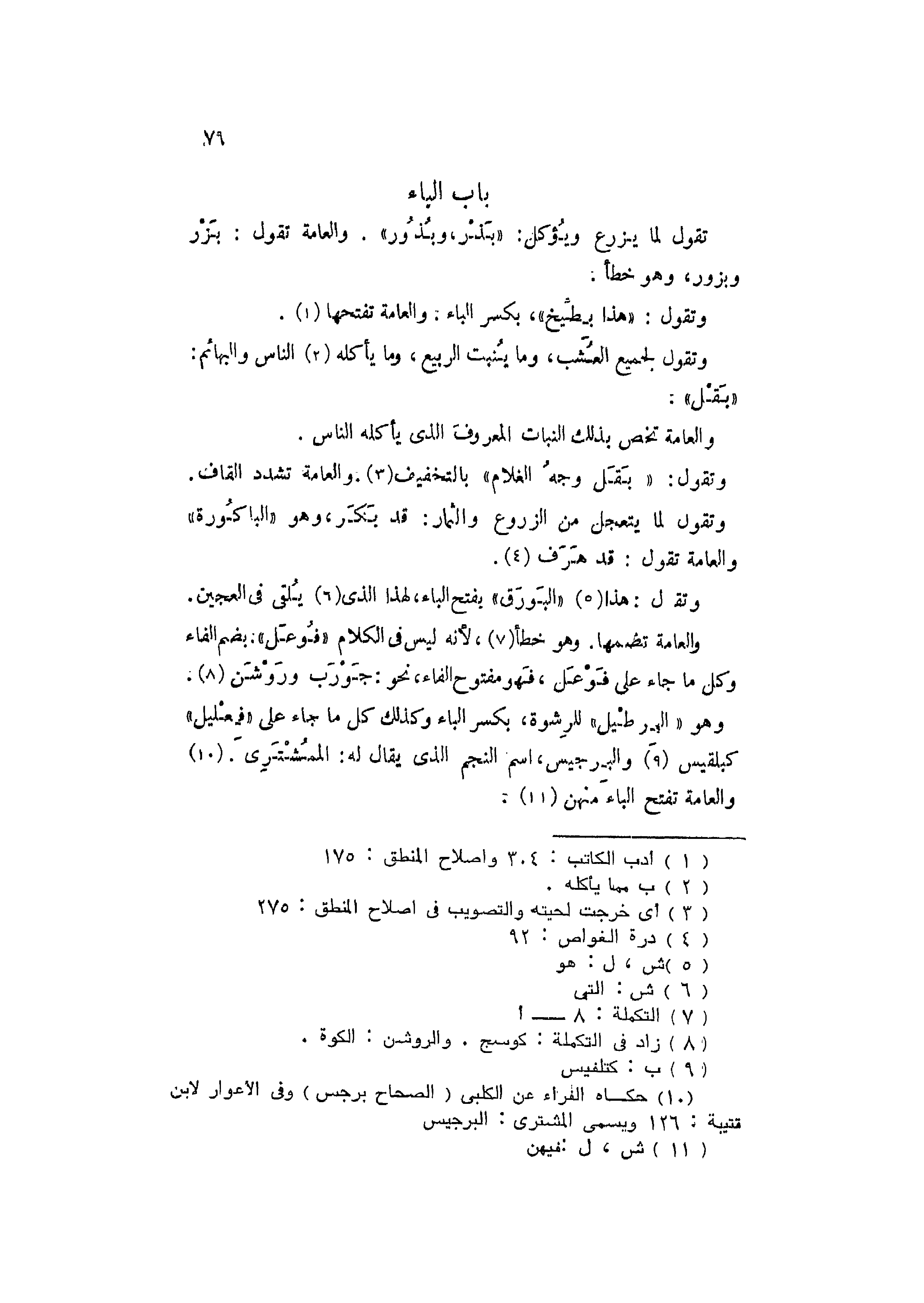 وتقول: "هذا بِطِّيخ"، بكسر الباء. والعامة تفتحها.