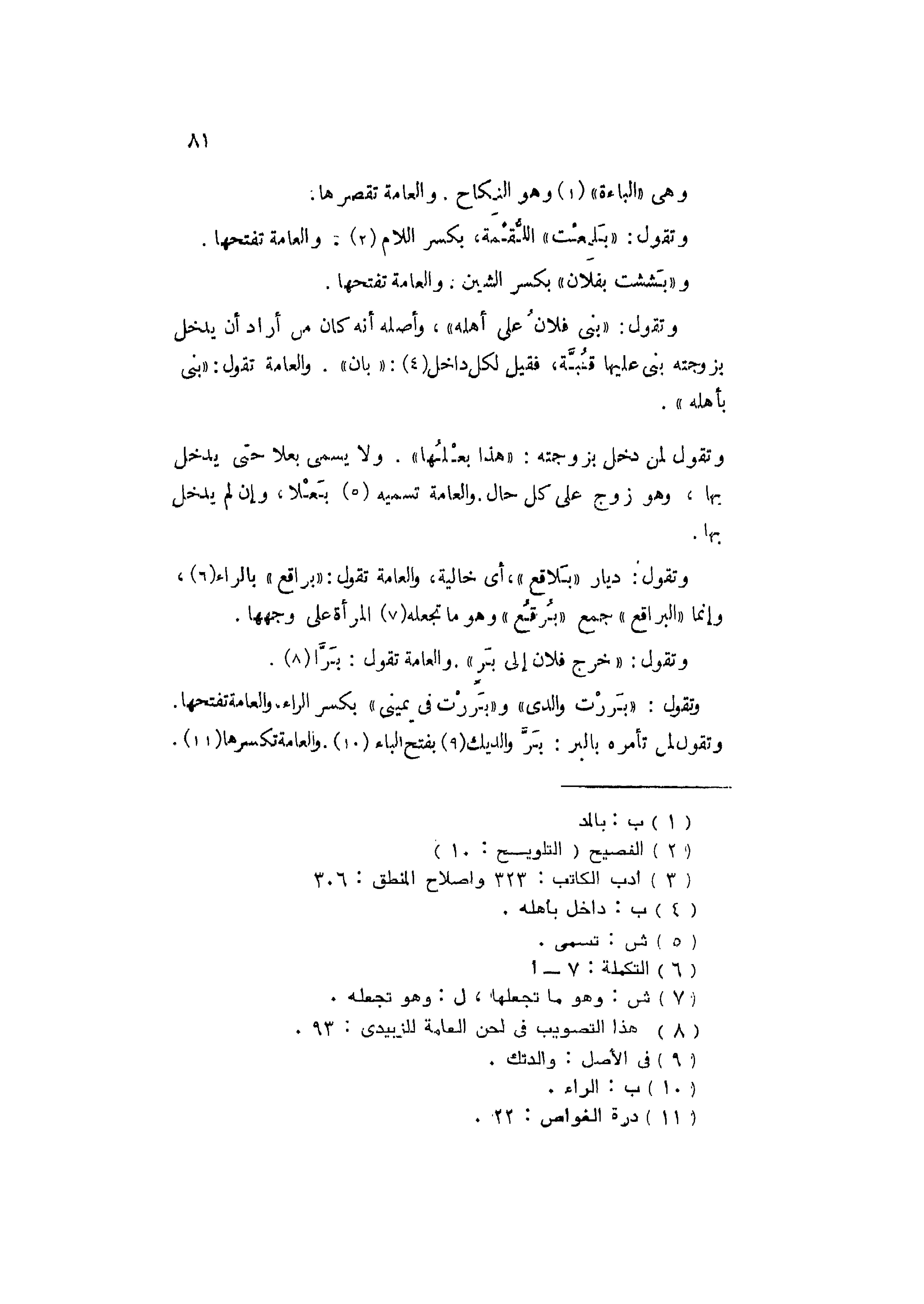 وتقول: "بنى فلانُ على أهله" وأصله أنه كان من أراد أن يدخل