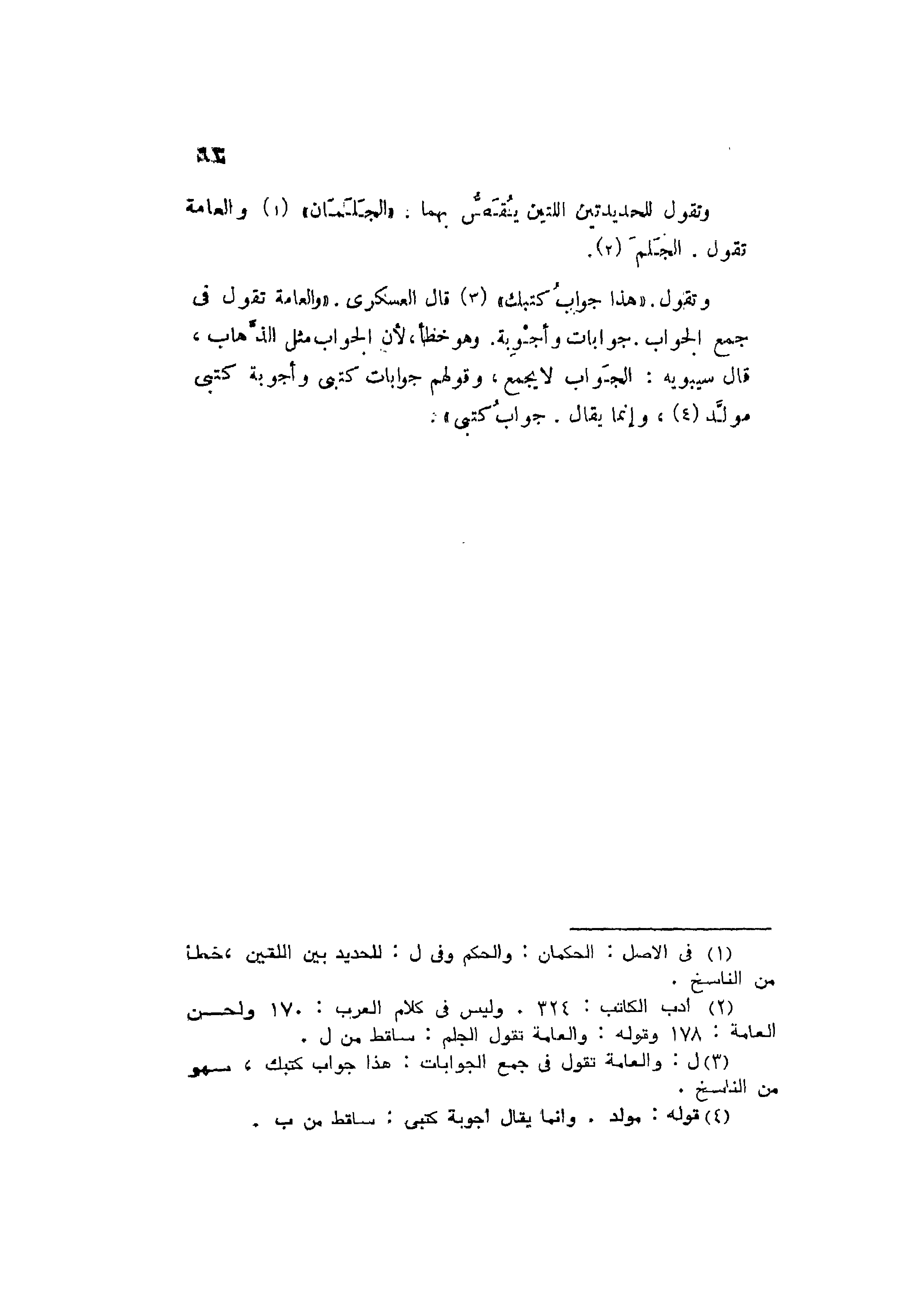 وتقول: "هذا جوابُ كتبك". قال العسكري: "والعامة تقول في
