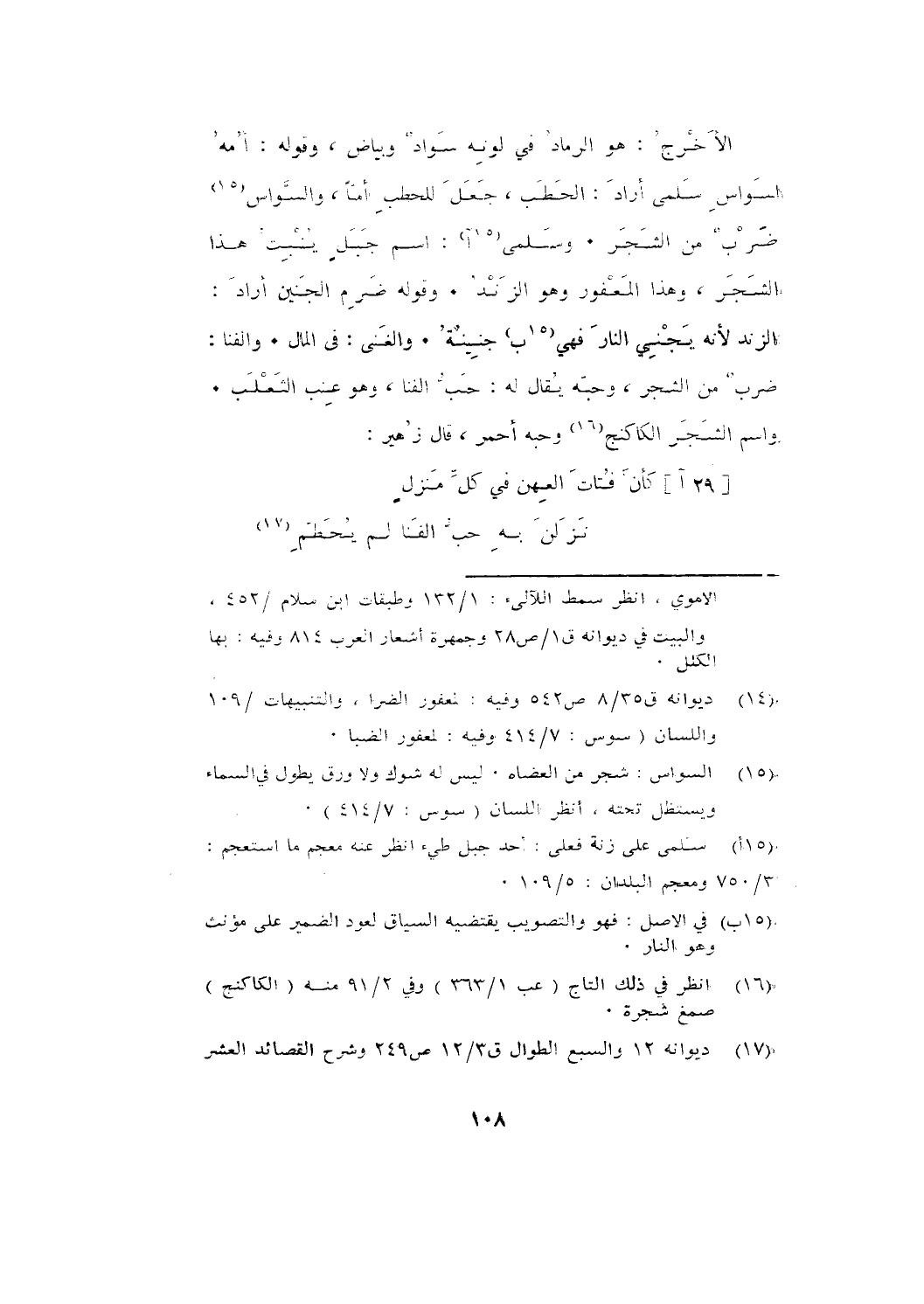 [29 آ [كَأَنَّ فُتَاتَ الْعِهْنِ فِي كُلِّ مَنْزِلٍ