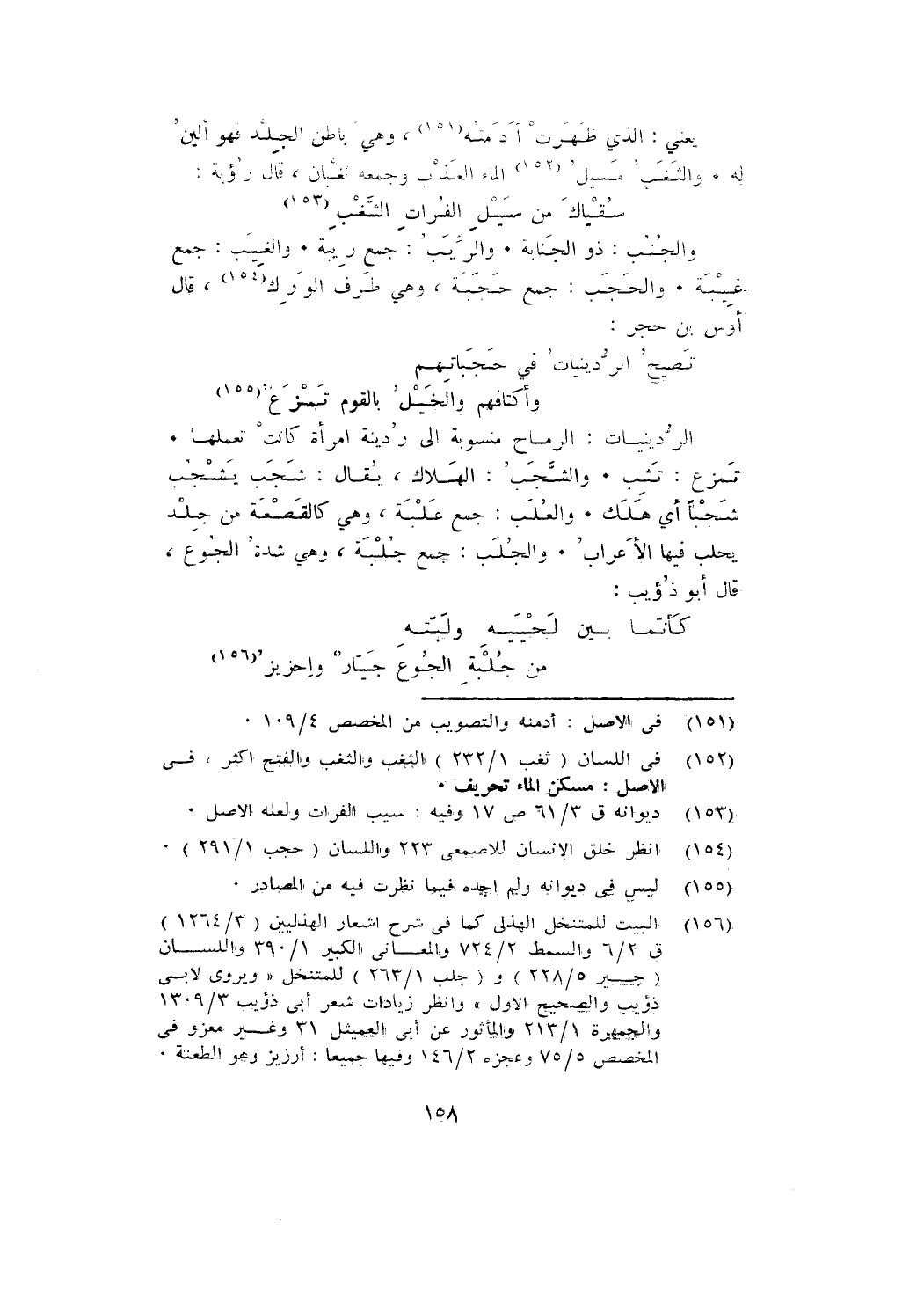 والجُنُب: ذو الجنابة. والرِّيَبُ: جمع ريبة. والغِيَب: جمع غِيْبَة. والحَجَب: جمع حَجَبَة، وهي طرف الوَرِك، قال أوس بن حجر: