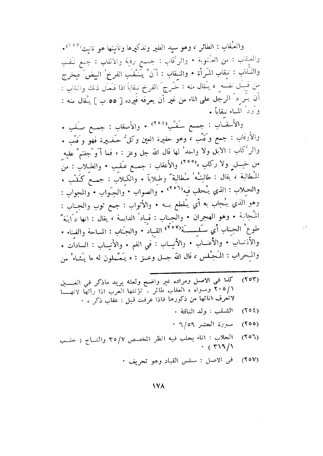 والعِقَاب: من العُقُوبَةِ. والرِّقَابِ: جمع رقبة. والألقاب: جمع لقب. والنِّقَابُ: نقاب المرأة. والنِّقَابُ: أن يَنْقَبَ الفرخُ البيضَ فيخرج من قِبَلِ نَفْسِهِ، يقال منه: خَرَجَ الفرخ نِقَابًا إذا فعل ذلك. والنِّقَابُ: أن يَرِدَ الرَّجُلُ على الماء من غير أن يعرفه فيرده [55 ب] يقال منه: وَرَدَ الْمَاءُ نِقَابًا.
