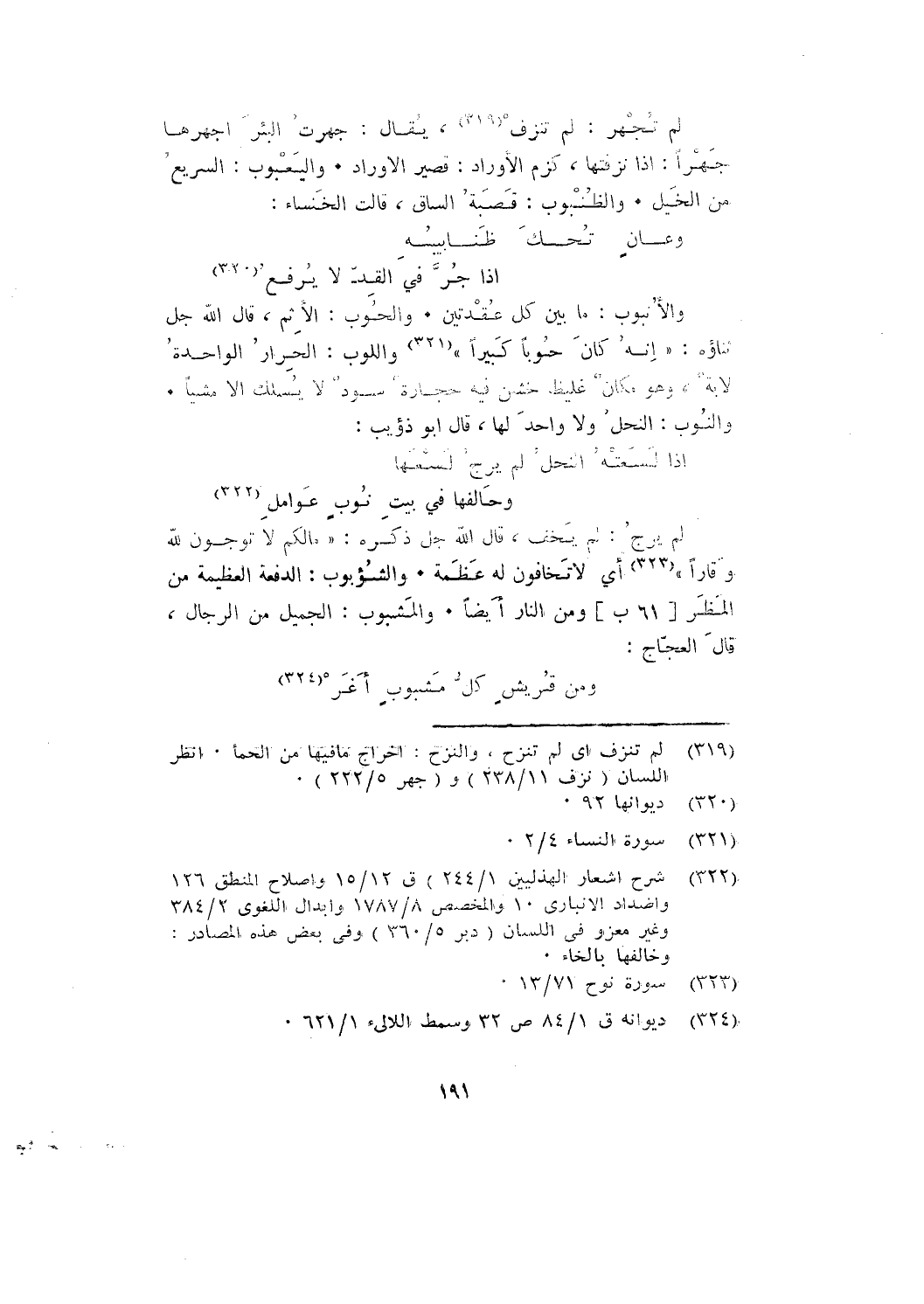 لم يرج: لم يخف، قال الله جل ذكره: {مَا لَكُمْ لَا تَرْجُونَ لِلَّهِ وَقَارًا}؛ أي: لا تخافون له عظمة. والشُّؤْبُوبُ: الدفعة العظيمة من المَظَر [61 ب] ومن النار أيضًا. والمَشْبُوبُ: الجميل من الرِّجَالِ، قال العجاج: