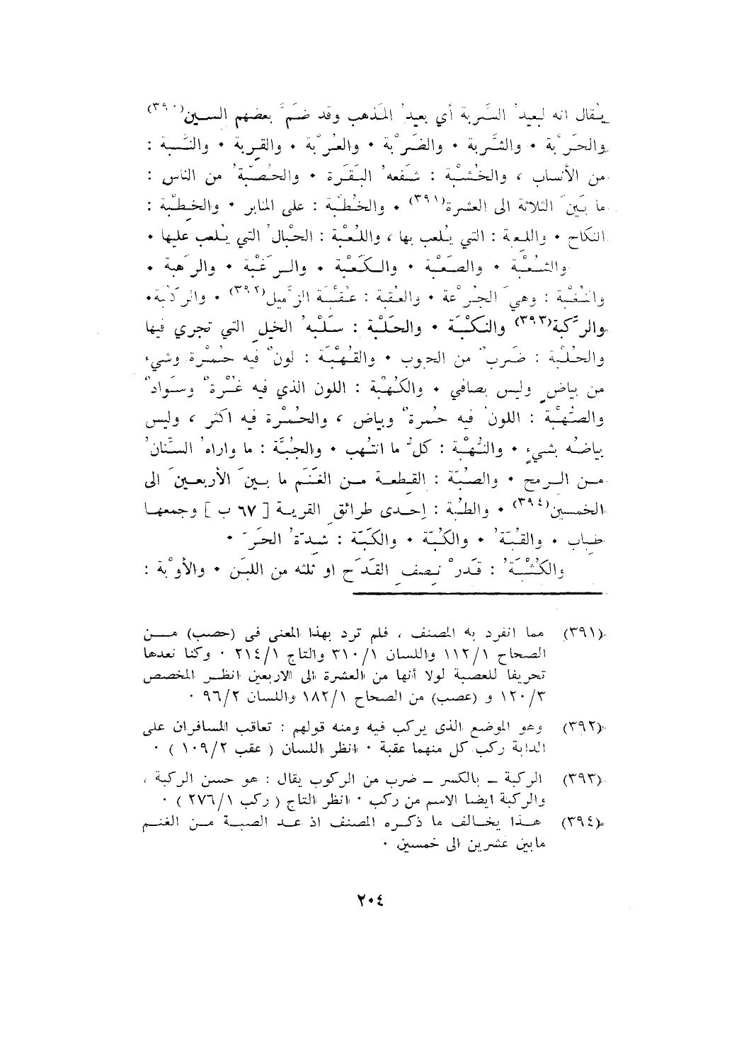 والشُّعْبَة. والصُّعْبَة. والكَعْبَة. والرَّغْبَة. والرَّهْبَة. والنُّغْبَة: وهي الجُرْعَة. والعُقْبَة: عُقْبَة الزَّمِيل. والرُّكْبَة. والرِّكْبَةُ. والنَّكْبَة. والحَلْبَة: سَلْبهُ الخيل التي تجري فيها والحُلْبَةُ: ضَرْبٌ مِنَ الحبوب. والقُهْبَة: لَوْنٌ فِيهِ حُمْرَةٌ وشيء من بياض وليس بصافٍ. والكُهْبَة: اللون الذي فيه غرةٌ وسواد، والصُّهْبَة: اللون فيه حُمْرَةٌ وبياض، والحمرة فيه أكثر، وليس بياضه بشيء. والنُّهْبَة: كُلُّ ما انْتُهِبَ. والجُبَّةُ: ما وَارَاهُ السِّنَانُ مِنَ الرُّمْحِ. والصُّبَّة: القطعة من الغنم ما بين الأربعين إلى الخمسين. والطُّبَّة: إحدى طرائق القرية [67 ب] وجمعها طِبَاب. والقُبَّة. والكُبَّة. والكَبَّة: شِدَّةُ الْحَرِّ.