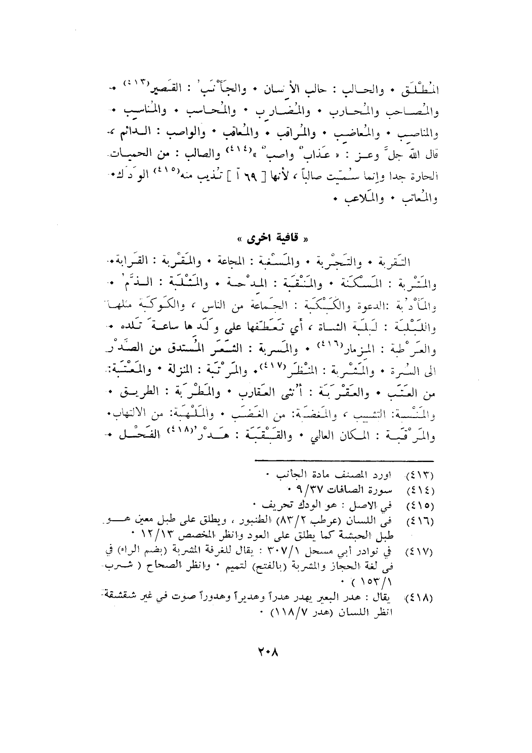 المُطْلَق. والحالب: حالب الإنسان. والجَانَبُ: القَصِيرُ. والمُصَاحِبُ والمُحَارِبُ. والمُضَارِبُ. والمُحَاسِبُ. والمُنَاسِبُ. والمناصب. والمُعَاضِبُ. والمُرَاقِبُ. والمُعَاقِبُ. والوَاصِبُ: الدائم، قال الله جل وعز: {عَذَابٌ وَاصِبٌ} والصَّالِبُ: من الحميات الحارة جدًّا وَإِنَّمَا سُمِّيَتْ صَالبًا؛ لأنها [69 آ] تُذِيب منه الوَدَكُ. والمُعَاتِبُ. والمَلَاعِبُ.