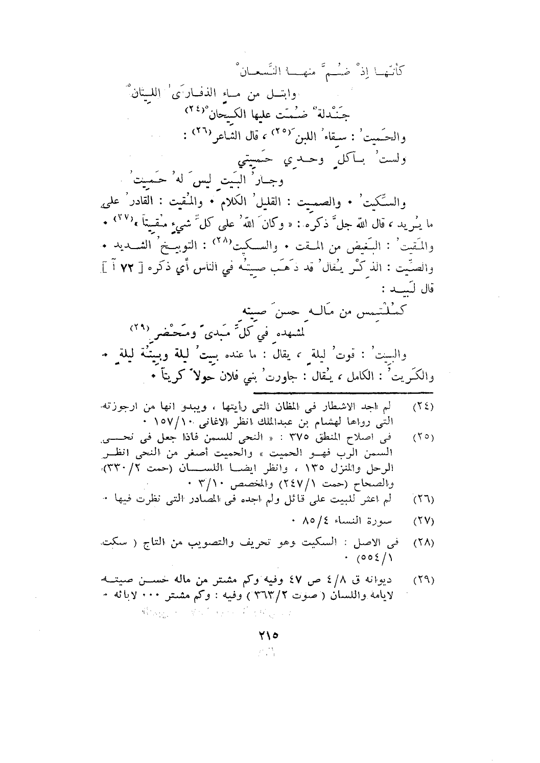 والسِّكيتُ. والصميت: القليل الكلام. والمُقِيت: القادر على ما يريد، قال الله جل ذكره: {وَكَانَ اللَّهُ عَلَى كُلِّ شَيْءٍ مُقِيتًا}.