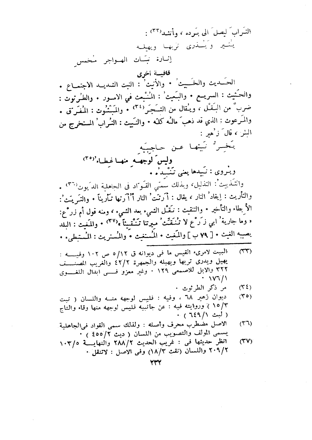 والتأريث: إيقاد النار، يقال: أرثت النار أأرثها تأريثا. والتريث: الإبطاء والتأخير. والتنقيث: نقل الشيء بعد الشيء، ومنه قول أم زرع: " وما جارية أبي زرع لا تنقث ميرتنا تنقيثا ". والمغيث: البلد يصيبه الغيث. [79 ب] والمغيث. المستغيث. والمستريث: المستبطئ.
