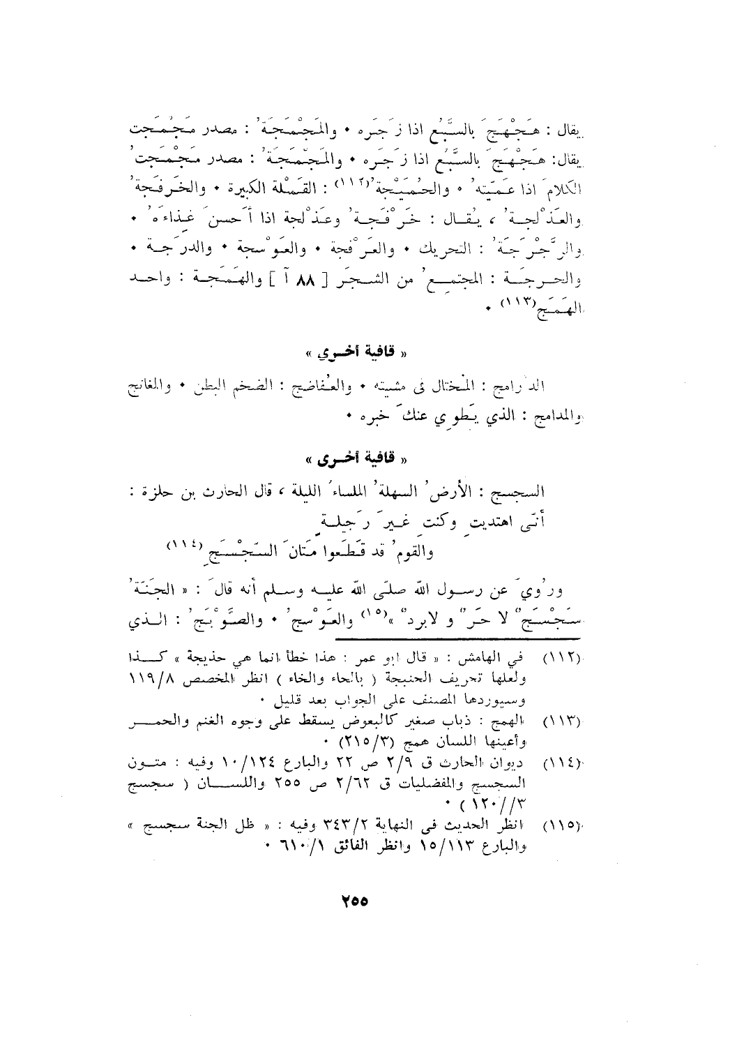 يقال: هجهج بالسبع إذا زجره. والمجمجة: مصدر مجمجت يقال: هجهج بالسبع إذا زجره. والمجمجة: مصدر مجمجت الكلام إذا عميته. والحميجة: القملة الكبيرة. والخرفجة والعذلجة، يقال: خرفجة وعذلجة إذا أحسن غذاءه.