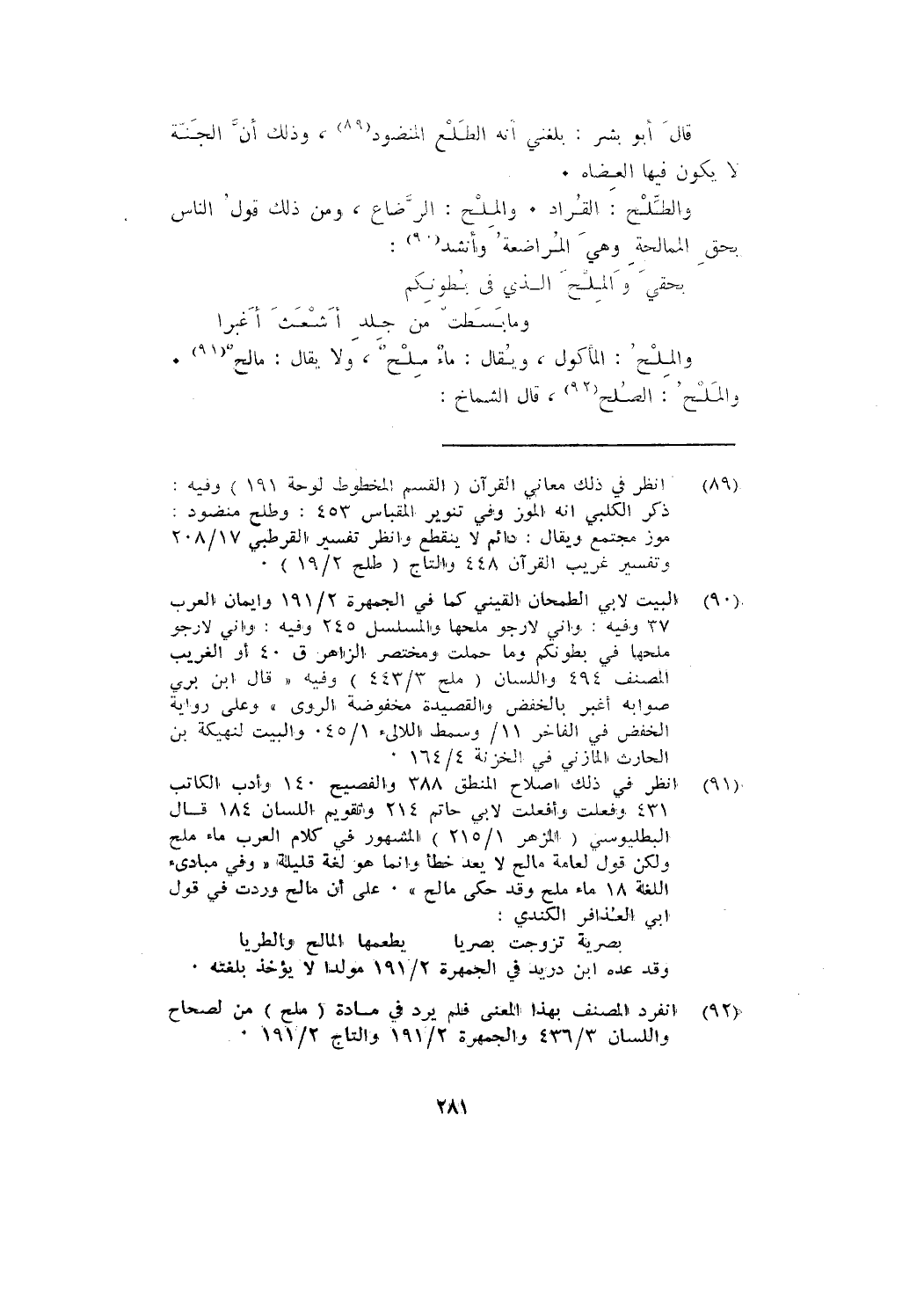 والطلح: القراد. والملح: الرضاع، ومن ذلك قول الناس بحق الممالحة وهي المراضعة وأنشد: