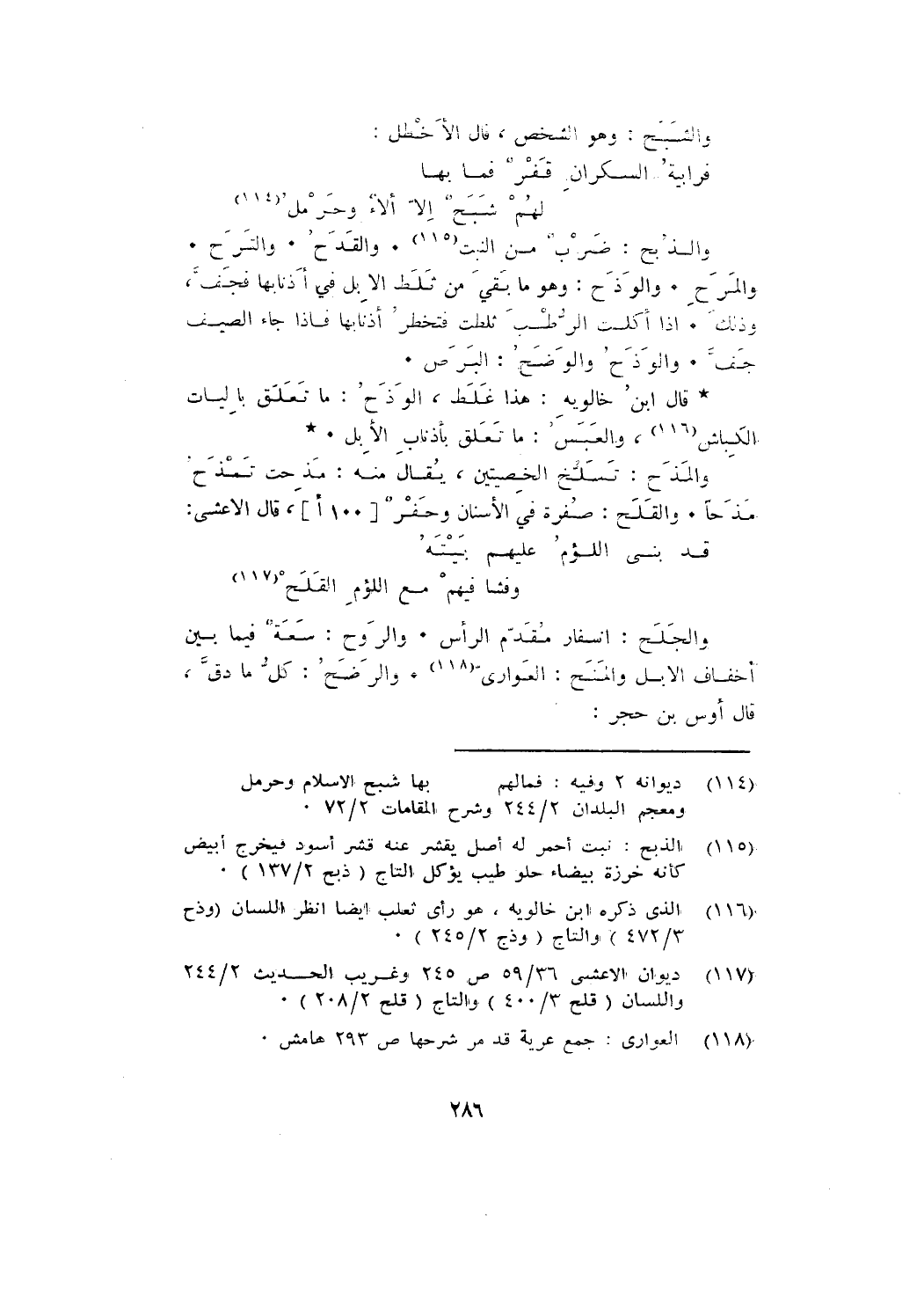 والجلح: انسفار مقدم الرُس. والروح: سعة فيما بين أخفاف الإبل والمنح: العواري. والرضح: كل ما دق، قال أوس بن حجر:
