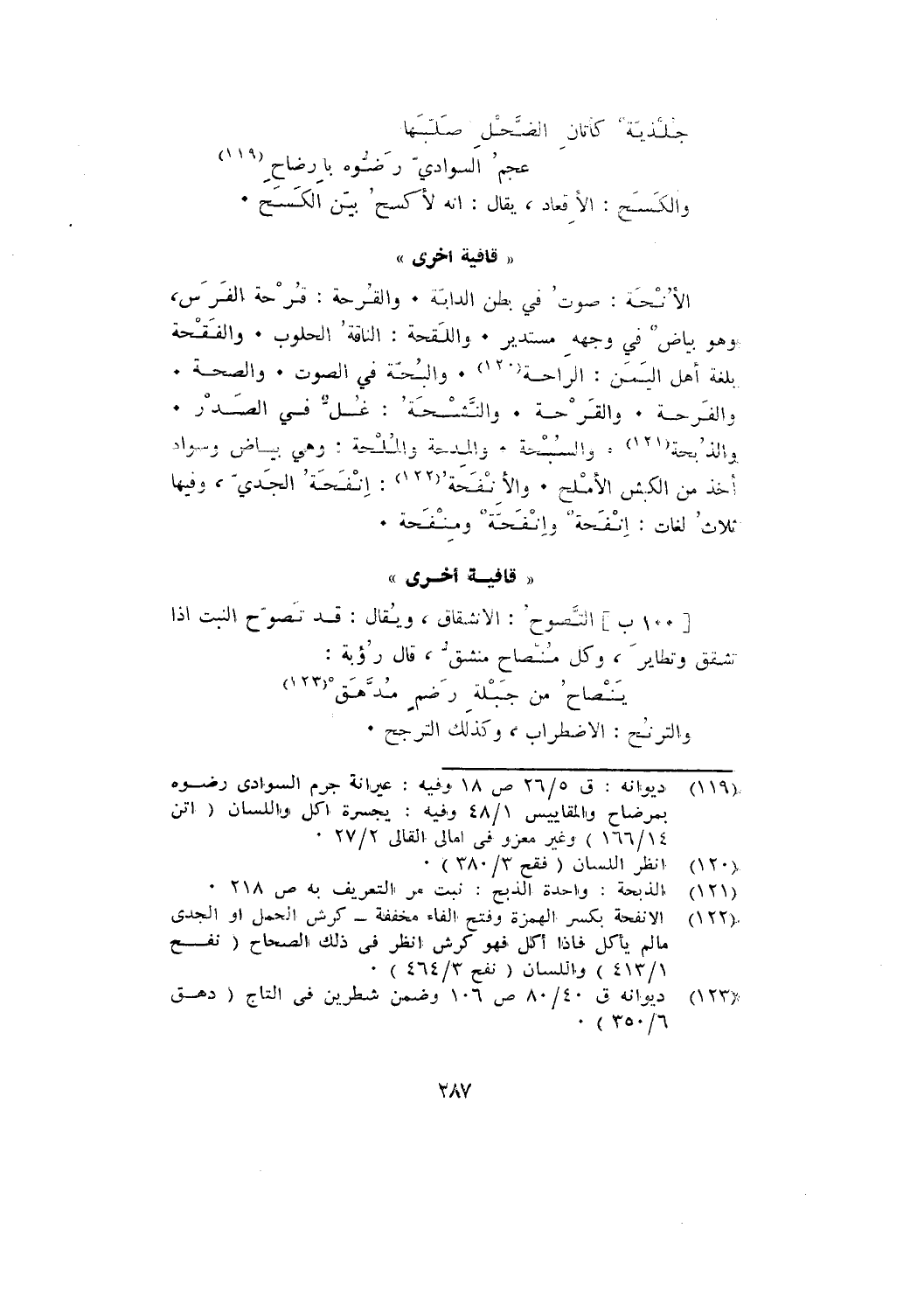 الأنحة: صوت في بطن الدابة. والقرحة: قرحة الفرس، وهو بياض في وجهه مستدير. واللقحة: الناقة الحلوب. والفقحة بلغة أهل اليمن: الراحة. والبحة في الصوت. والصحة. والفرحة. والقرحة. والنشحة: غل في الصدر. والذبحة. والسبحة. والمدحة والملحة: وهي بياض وسواد أخذ من الكبش الأملح. والإنفحة: إنفحة الجدي، وفيها ثلاث لغات: إِنْفَحَةٌ وإِنْفَحَّةٌ وَمِنْفَحَةٌ.