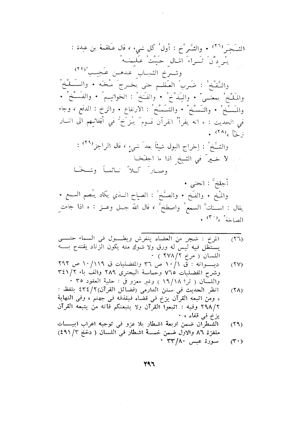 والنقخ: ضرب العظم حتى يخرج مخه. والسلخ والملخ بمعنى. والبذخ. والفتخ: الخواتيم. والفسخ. والمسخ. والنسخ. والشمخ: الارتفاع. والزخ: الدفع، وجاء في الحديث: " أنه يقرأ القرآن قوم يزخ في أقفائهم إلى النار زخا ".
