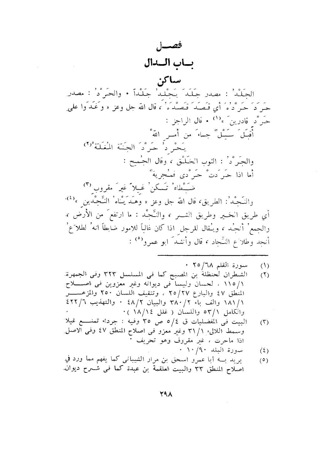 الجلد: مصدر جلد يجلد جلدًا. والحرد: مصدر حرد حرده؛ أي: قصد قصده، قال الله جل وعز: {وَغَدَوْا عَلَى حَرْدٍ قَادِرِينَ}. قال الراجز: