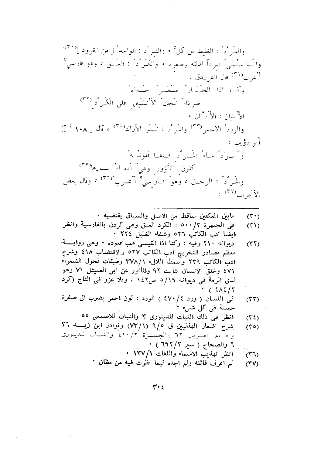 والعرد: الغليظ من كل. والقرد: الواحد [من القرود] وإنما سمي قردًا لذلته وصغره. والكرد: العنق، وهو فارسي أعرب قال الفرزدق: