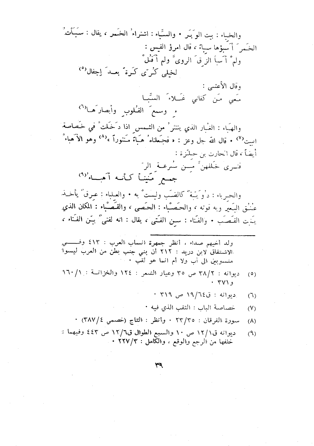 والهَباء: الغُبار الذي ينتثرُ من الشمسِ إذا دَخَلَتْ في خَصَاصَةِ البيت. قال الله عز وجل: {فَجَعَلْنَاهُ هَبَاءً مَنْثُورًا} وهو الأهباءُ أيضًا، قال الحارث بن حِلّزة: