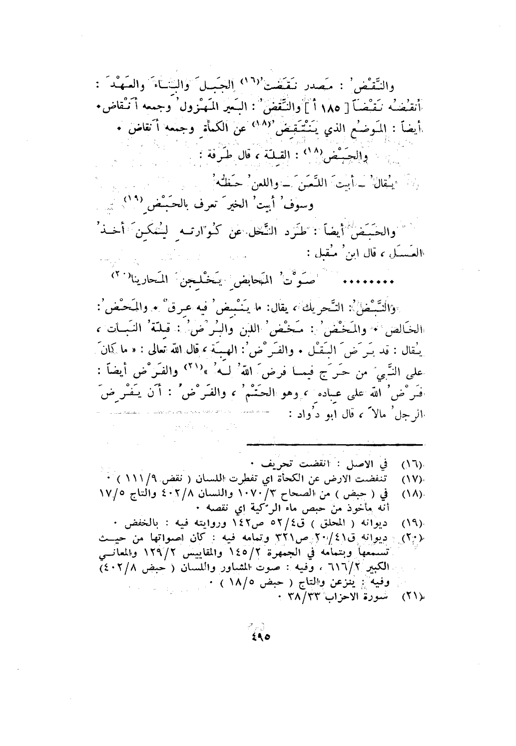 والنبض: التحريك، يقال: ما ينبض فيه عرق. والمحض: الخالص. والمخض: مخض اللبن والبرض: قلة النبات، يقال: قد برض البقل. والفرض: الهبة، قال الله تعالى: {مَا كَانَ عَلَى النَّبِيِّ مِنْ حَرَجٍ فِيمَا فَرَضَ اللَّهُ لَهُ} والفرض أيضا: فرض الله على عباده، وهو الحتم، والفرض: أن يفرض الرجل مالا، قال أبو دواد: