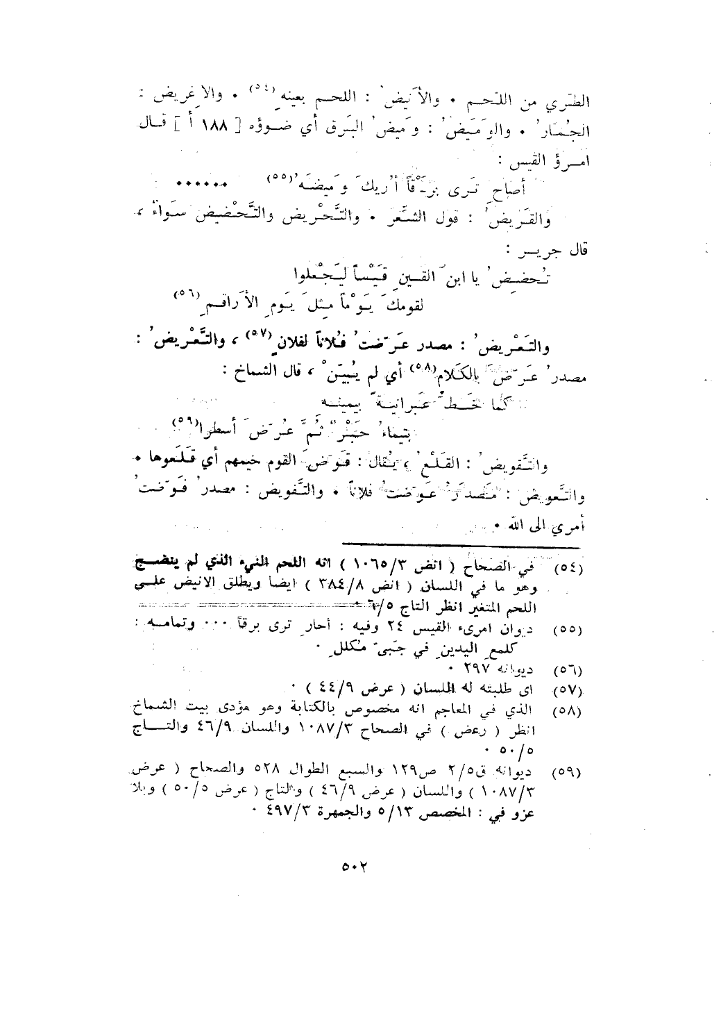 والتعريض: مصدر عرض بالكلام اي لم يبين، قال الشماخ: