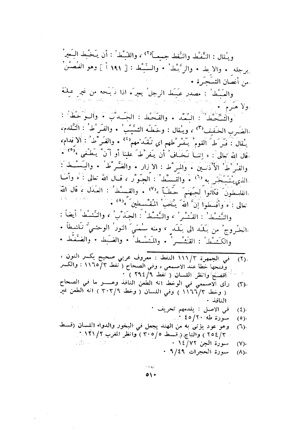ويقال: النفط والنفط جميعا، واللبط: أن يخبط البعير برجله. والإبط. والربط. والسبط: وهو الغصن من أغصان الشجرة.