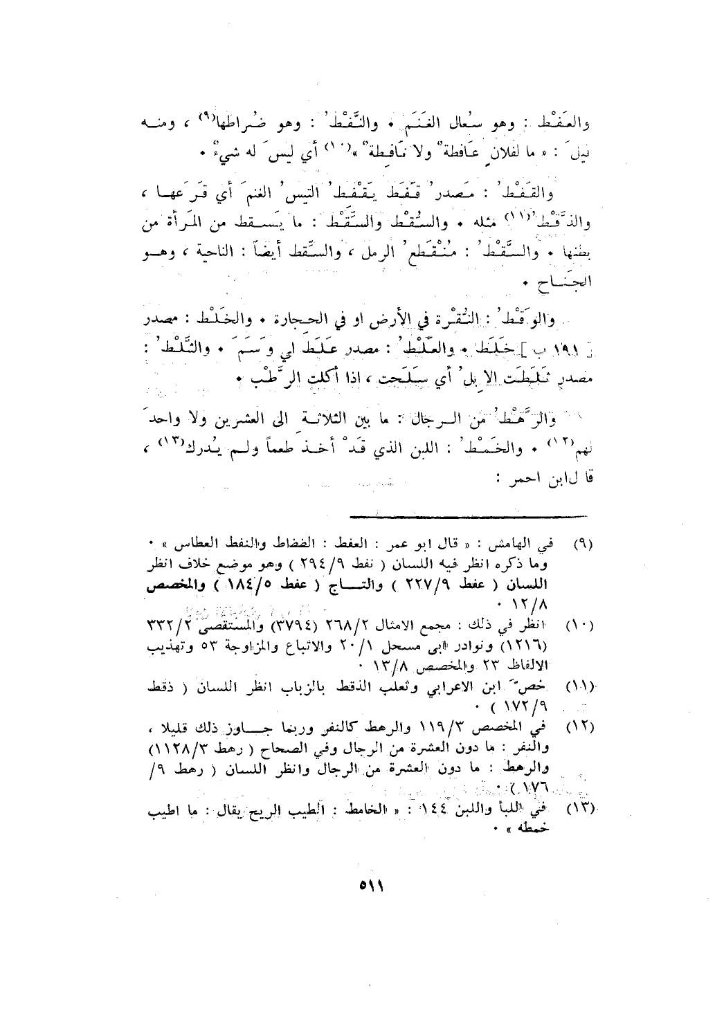 والقفط: مصدر قفط يقفط التيس الغنم أي قرعها، والذقط مثله. والسقط والسقط: ما يسقط من المرأة من بطنها. والسقط: منقطع الرمل، والسقط ايضا: الناحية، وهو الجناح.