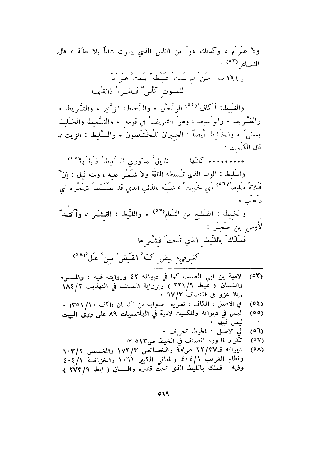 والضريط. والوسيط: وهو الشريف في قومه. والشميط والخليط بمعنى. والخليط أيضا: الجيران المختلطون. والسليط: الزيت، قال الكميت: