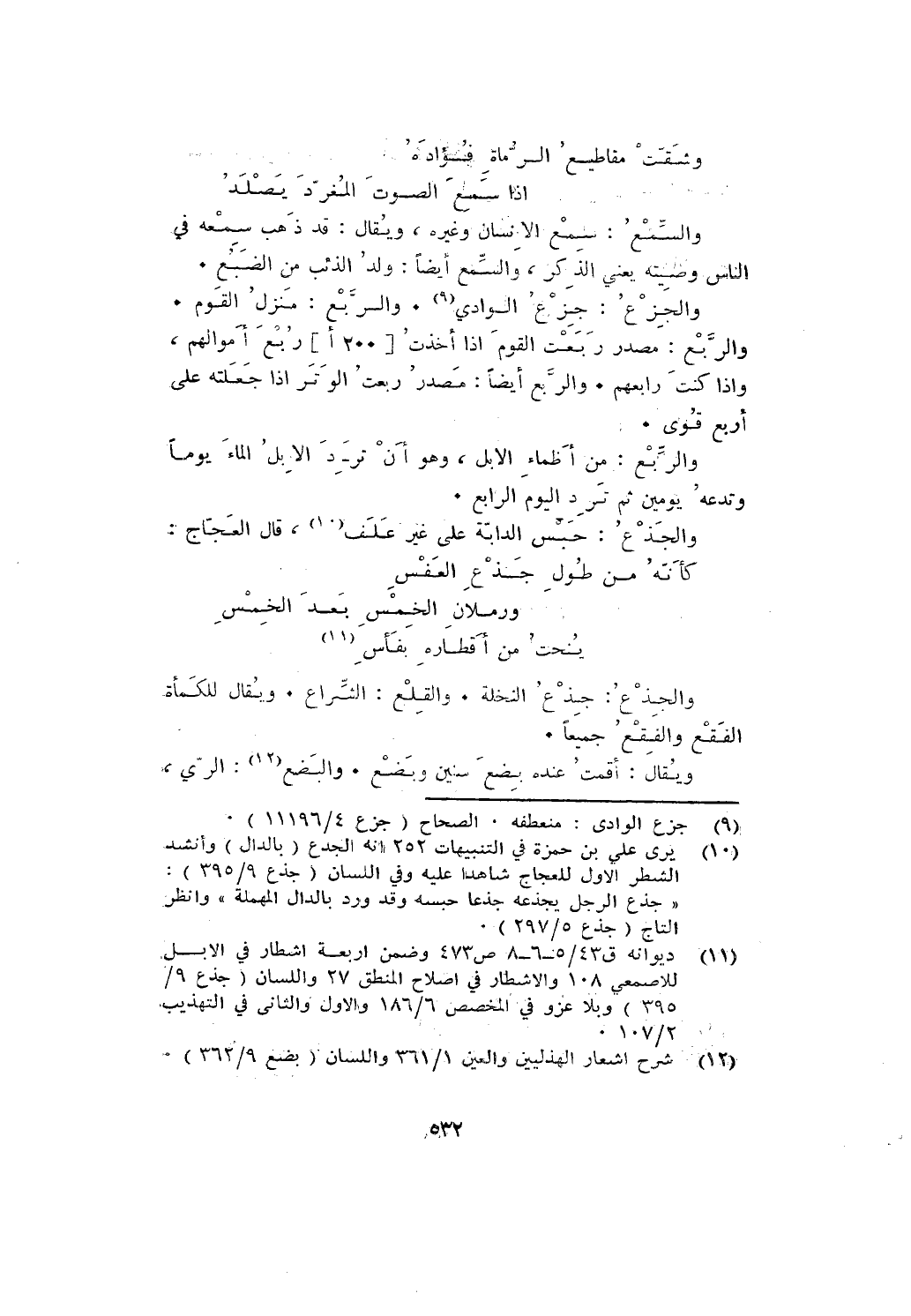 والجزع: جزع الوادي. والربع: منزل القوم. والربع: مصدر ربعت القوم إذا أخذت ربع أموالهم، وإذا كنت رابعهم. والربع أيضا: مصدر ربعت الوتر إذا جعلته على أربع قوى.