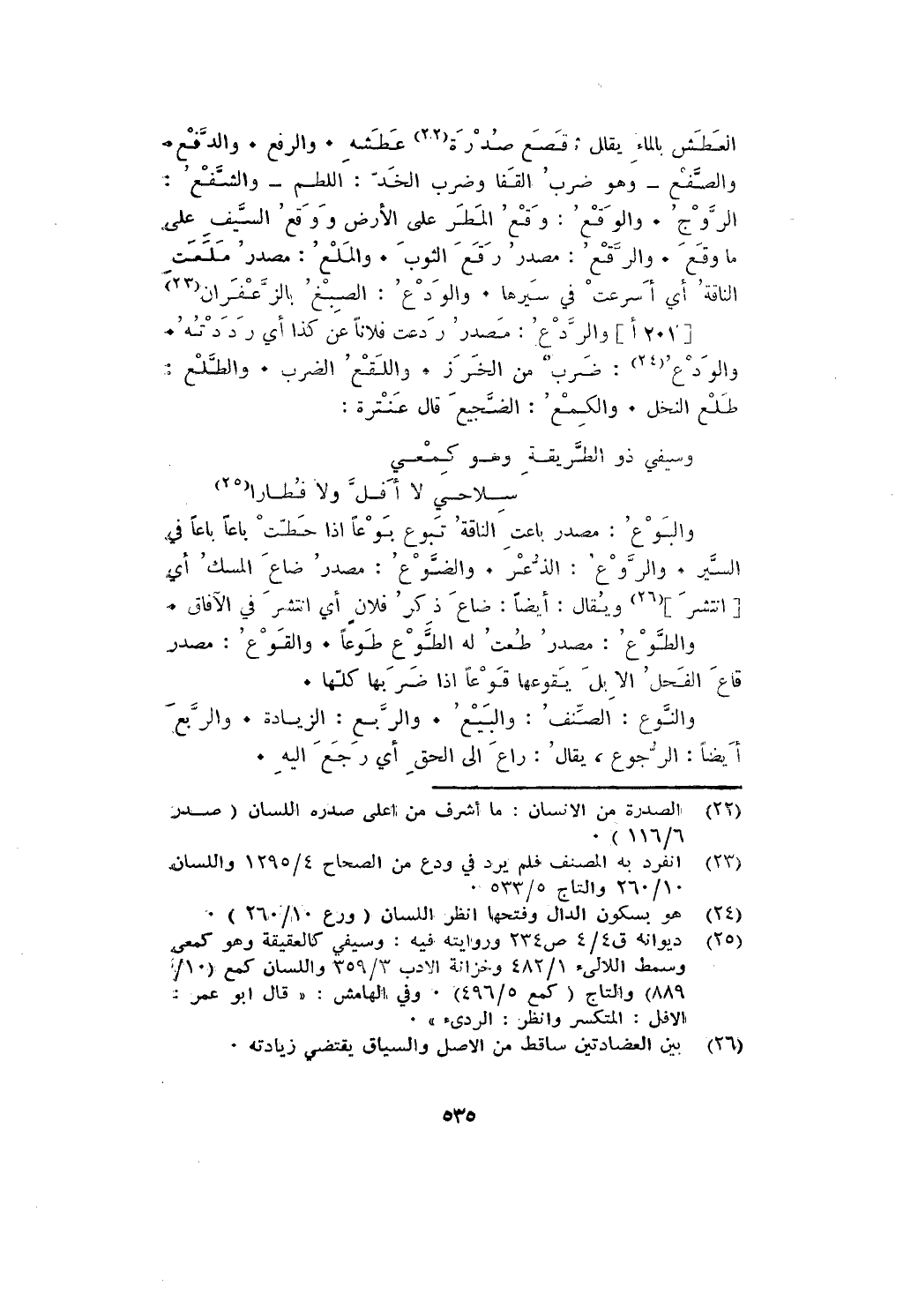 العطش بالماء يقلل ... صدره عطشه. والرفع. والدفع. والصفع- وهو ضرب القفا وضرب الخد: اللطم- والشفع: الروج. والوقع: وقع المطر على الأرض ووقع السيف على ما وقع. والرقع: مصدر رقع الثوب. والملع: مصدر ملعت النلقة أي أسرعت في سيرها. والودع: الصبغ بالزعفران.