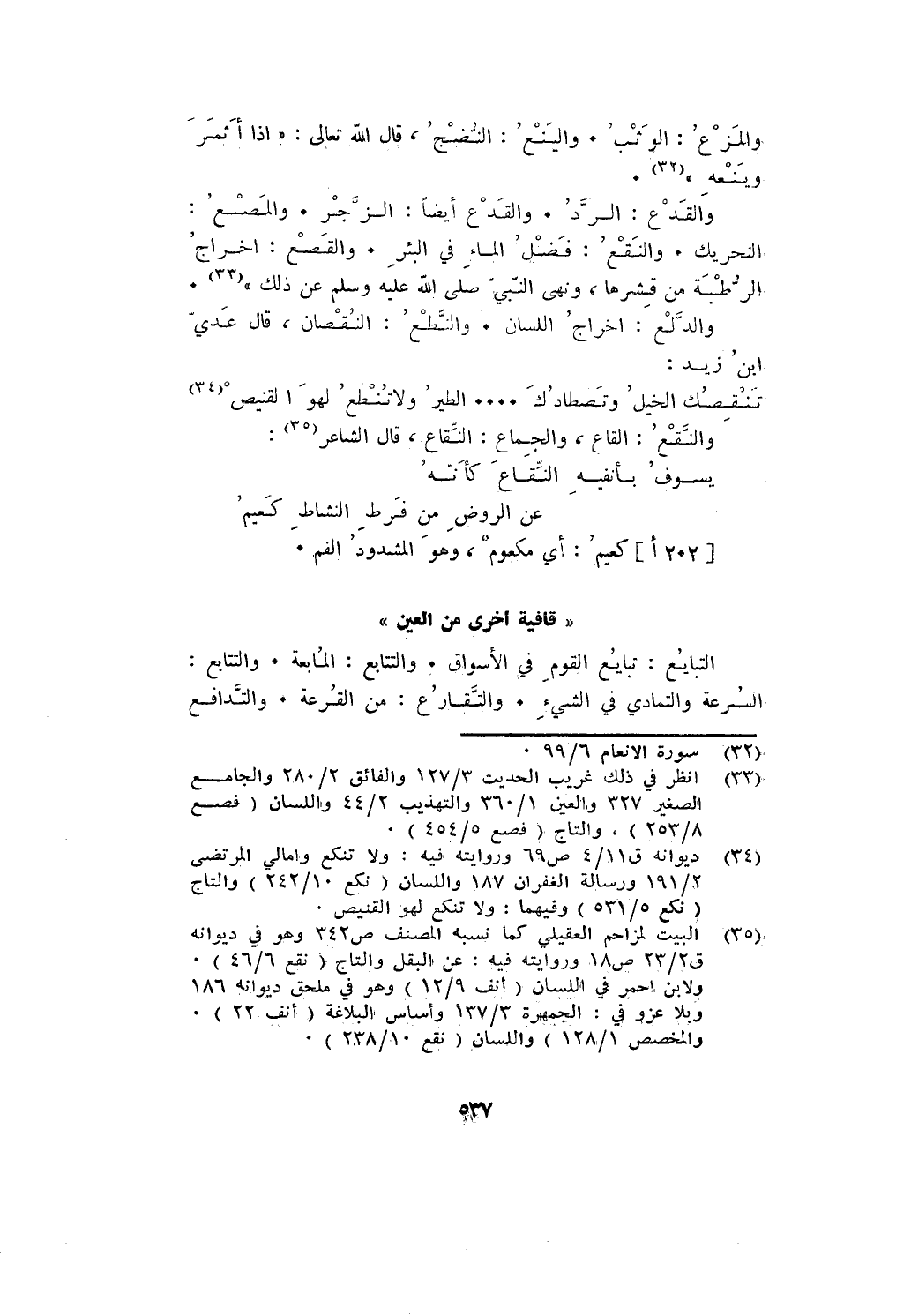 " قافية أخرى من العين "
