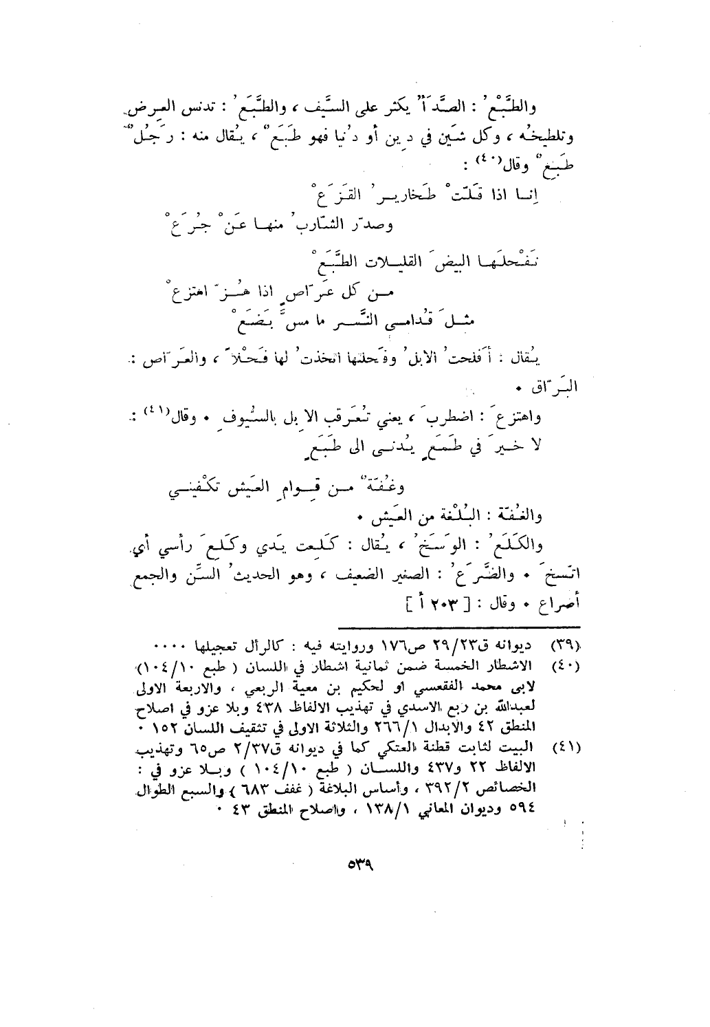 والطبع: الصدأ يكثر على السيف، والطبع: تدنس العرض وتلطيخه، وكل شين في دين أو دنيا فهو طبع، يقال منه: رجل طبع وقال: