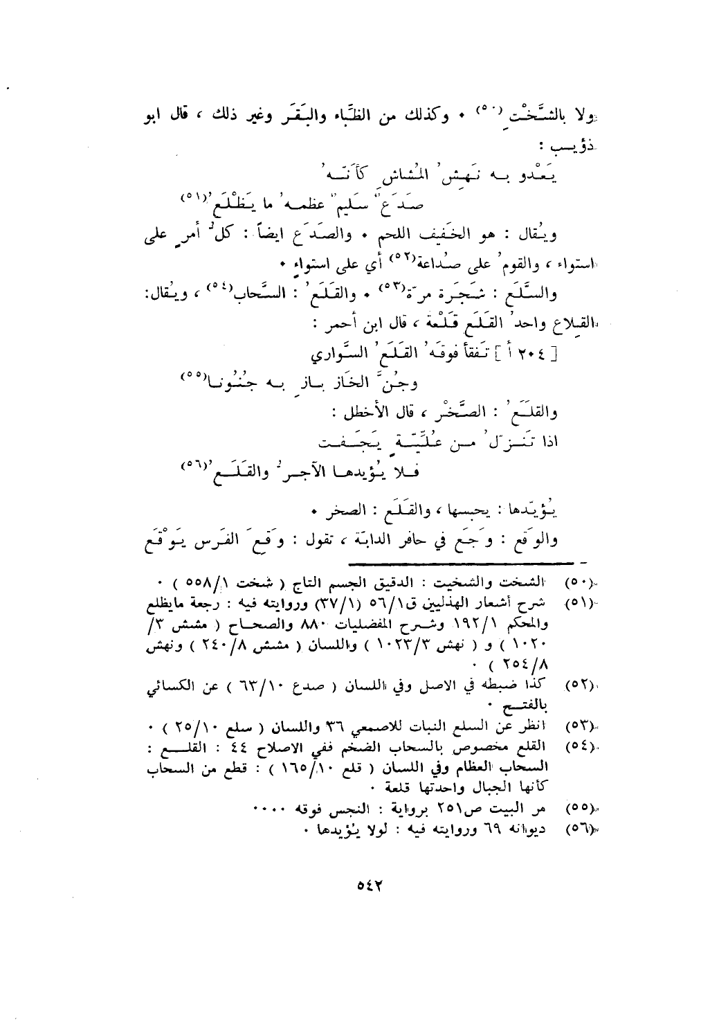 ولا بالشخت. وكذلك من الظباء والبقر وغير ذلك، قال أبو ذؤيب: