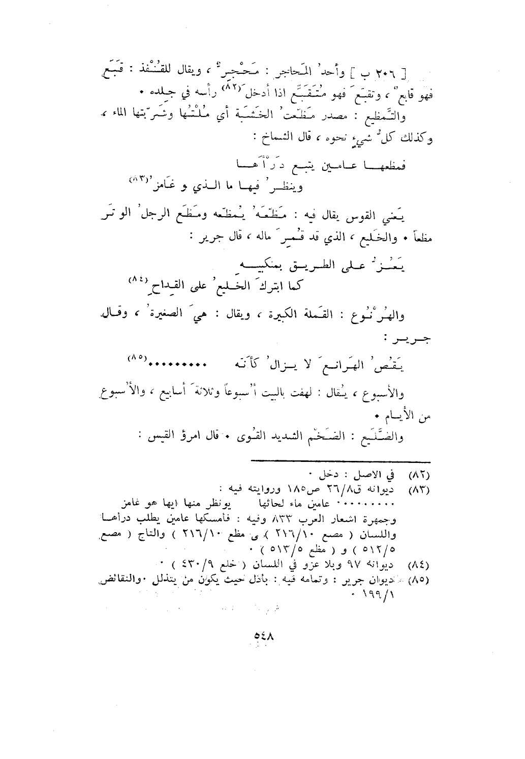 [206 ب] وأحد المحاجر: محجر، ويقال للقنفذ: قبع فهو قابع، وتقبع فهو متقبع إذا أدخل رأسه في جلده.