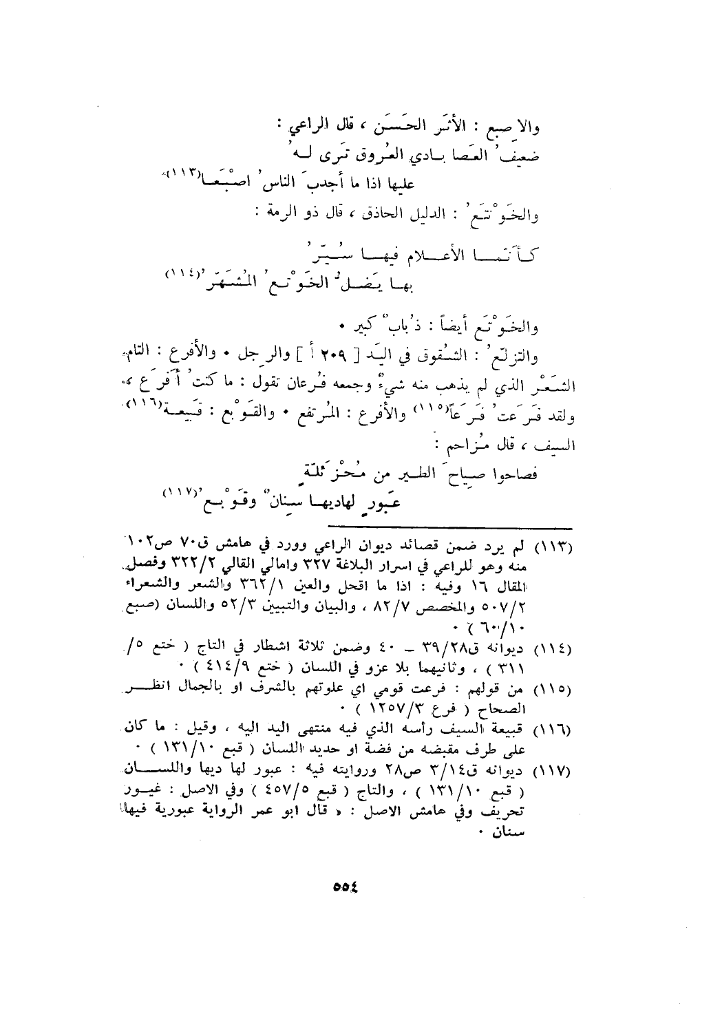 والتزلع: الشقوق في اليد والرجل. والأفرع: التام الشعر الذي لم يذهب منه شيء وجمعه فرعان تقول: ما كنت أفرع ولقد فرعت فرعا والأفرع: المرتفع. والقوبع: قبيعة السيف، قال مزاحم: