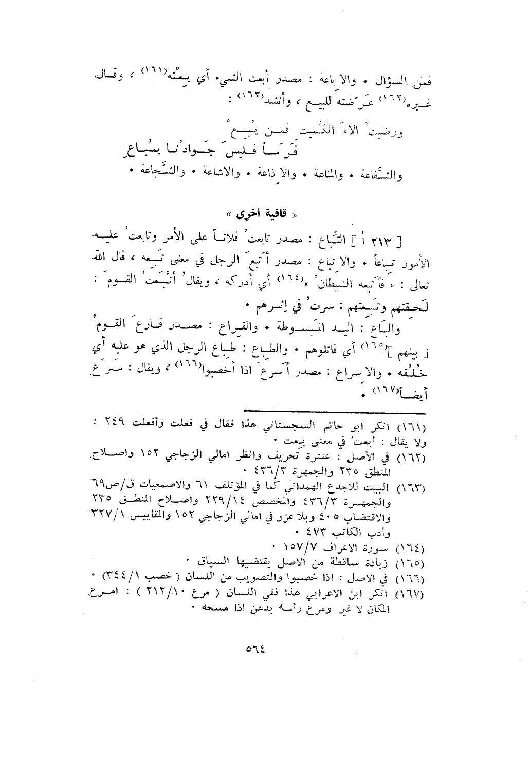 والباع: اليد المبسوطة. والقراع: مصدر قارع القوم بينهم أي قاتلوهم. والطباع: طباع الرجل الذي هو عليه أي خلقه. والإسراع: مصدر أسرع إذا أخصبوا، ويقال: سرع أيضا.