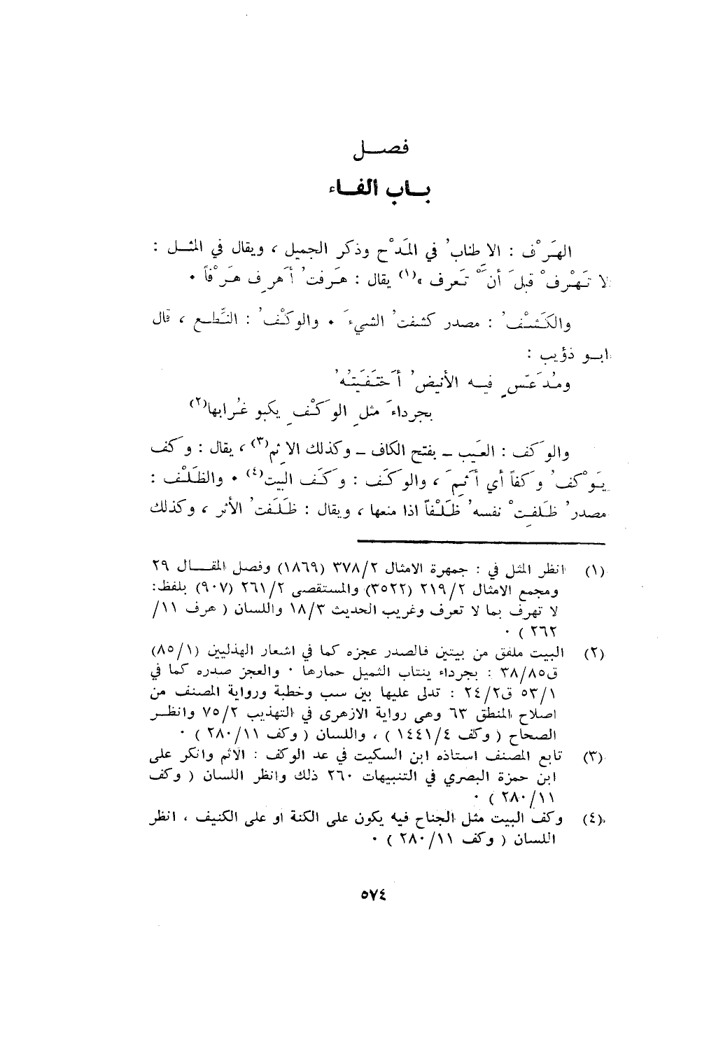 والوكف: العيب - بفتح الكاف - وكذلك الإثم، يقال: وكف يوكف وكفا أي أثم، والوكف: وكف البيت. والظلف: مصدر ظلفت نفسه ظلفها إذا منعها، ويقال: ظلفت الأثر، وكذلك