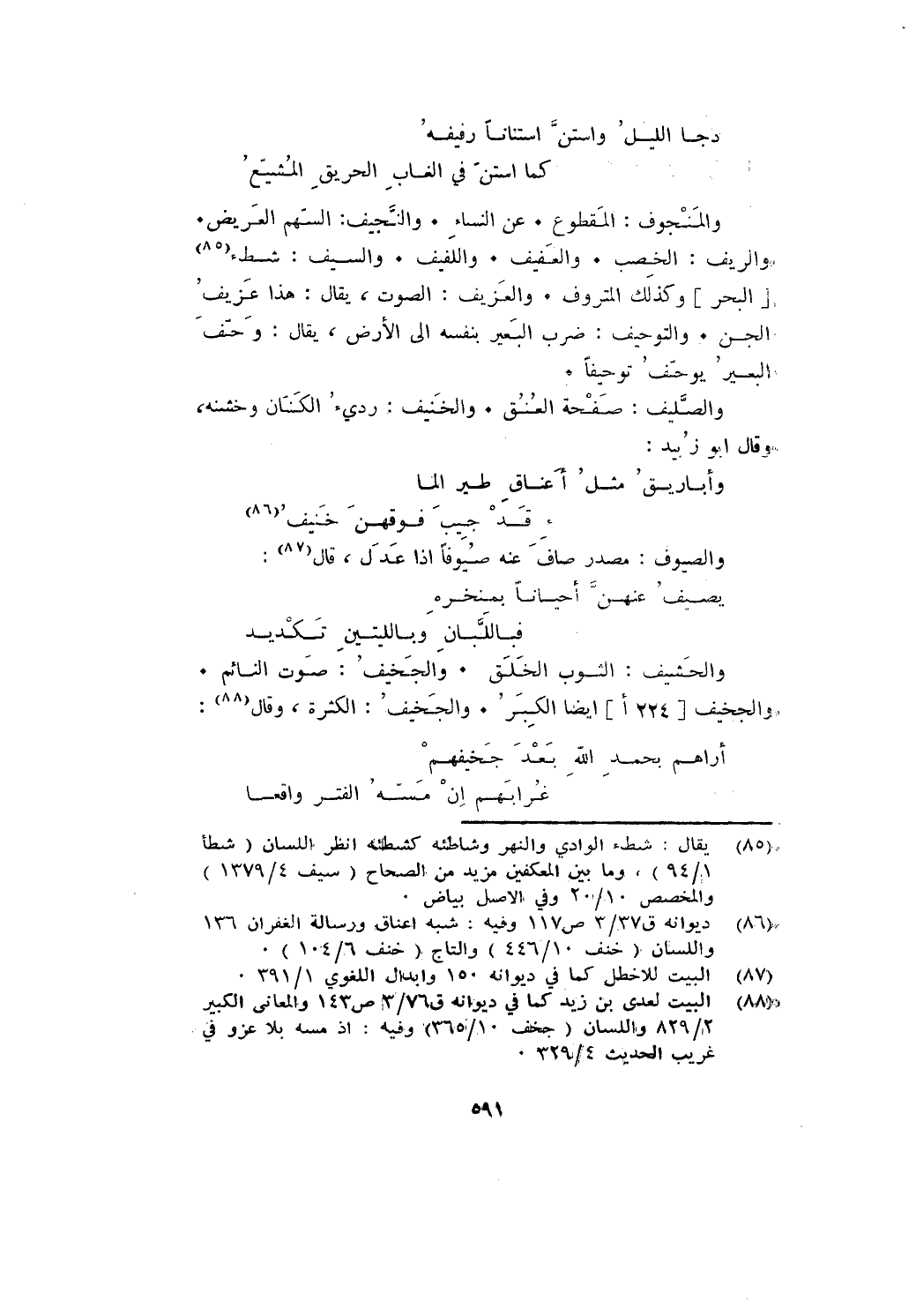 والصليف: صفحة العنق. والخنيف: رديء الكنان وخشنه، وقال أبو زبيد: