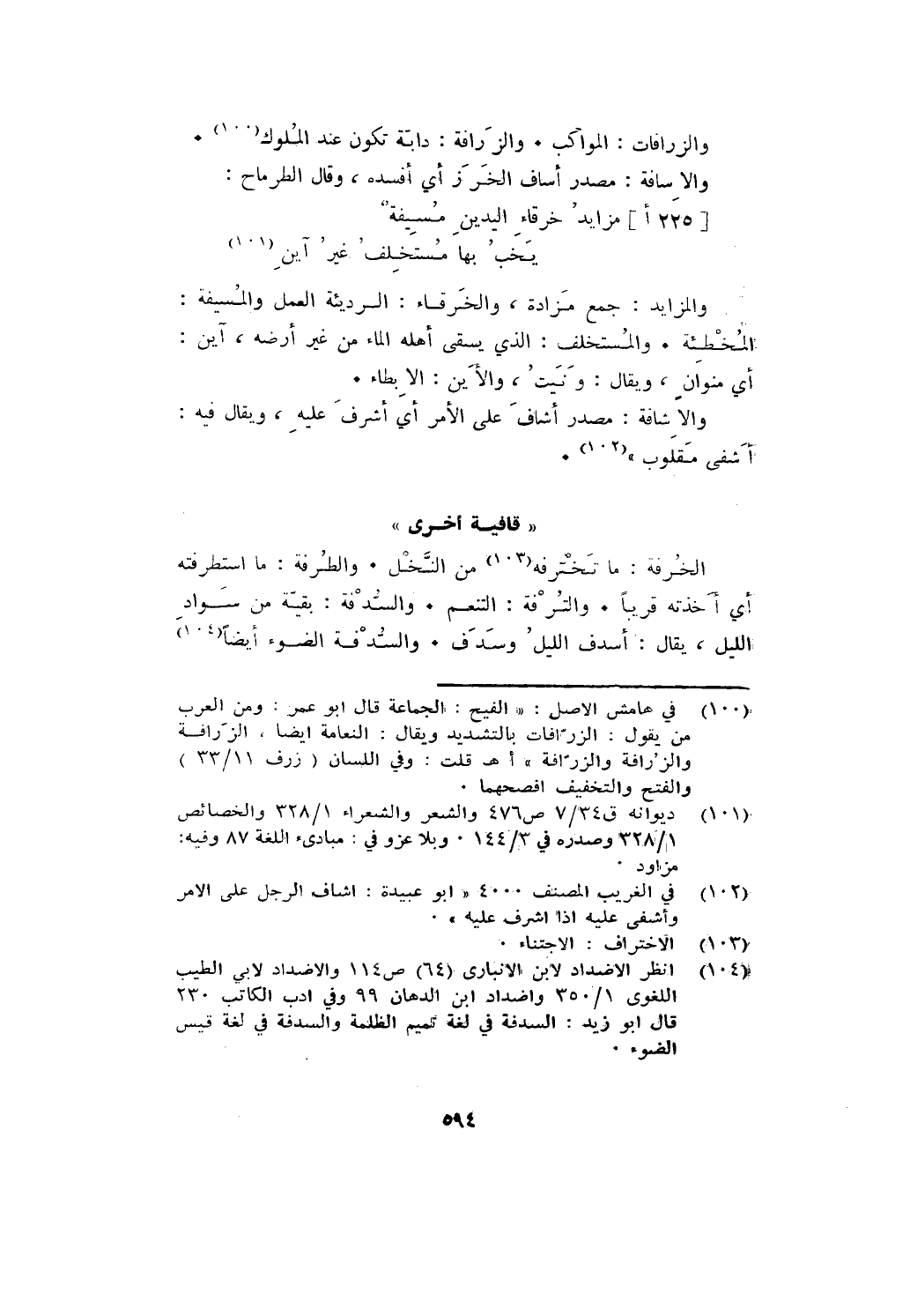 والزرافات: المواكب. والزرافة: دابة تكون عند الملوك. والإسافة: مصدر أساف الخرز أي أفسده، قال الطرماح: