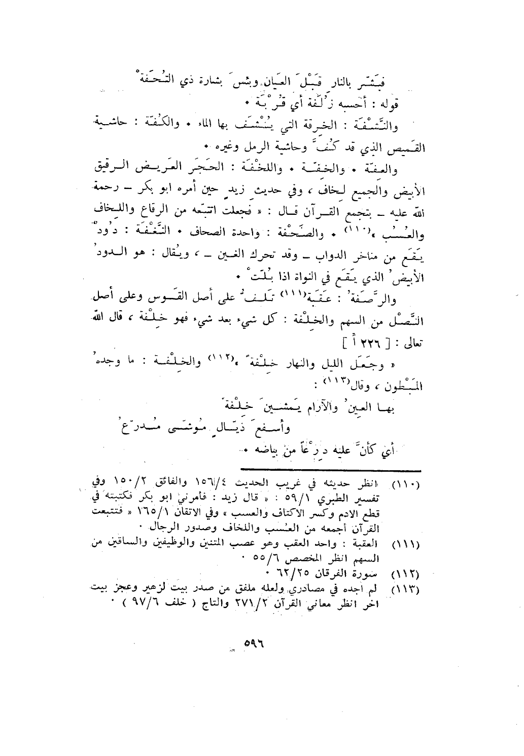 والرصفة: عقبة تلف على أصل القوس وعلى أصل النصل من السهم والخلفة: كل شيء بعد شيء فهو خلفة، قال الله تعالى: {وَهُوَ الَّذِي جَعَلَ اللَّيْلَ وَالنَّهَارَ خِلْفَةً} والخلفة: ما وجده المبطون، وقال: