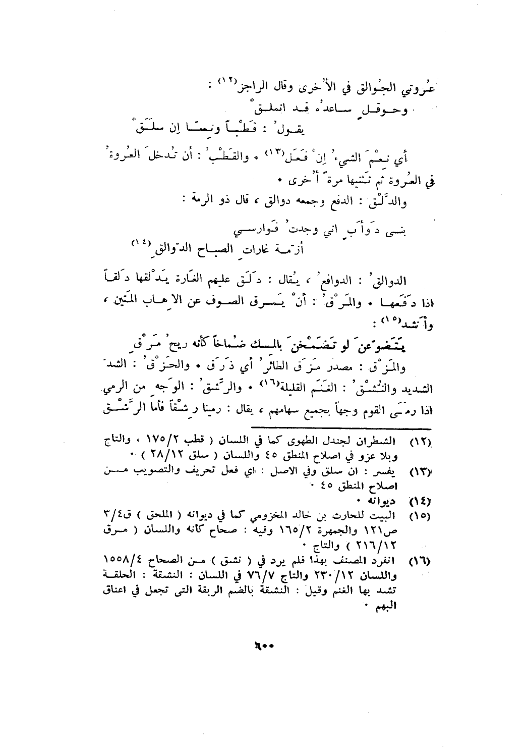 الدوالق: الدوافع، يقال: دلق عليهم الغارة يدلقها دلقا إذا دفعها. والمرق: أن يمرق الصو عن الإهاب المتين، وأنشد: