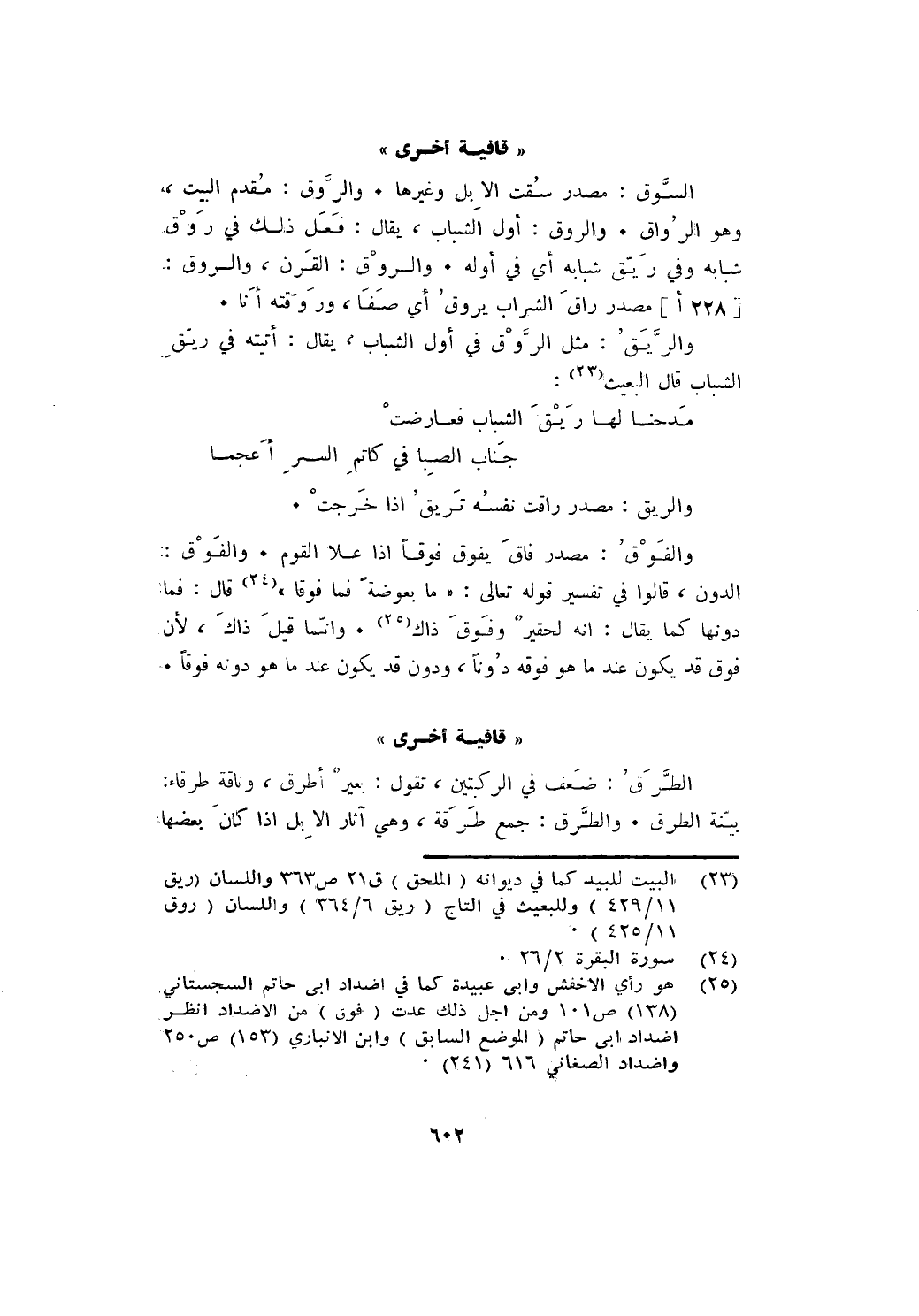 السوق: مصدر سقت الإبل وغيرها. والروق: مقدم البيت، وهو الرواق. والروق: أول الشباب، يقال: فعل ذلك في روق بابه وفي ريق شبابه أي في أوله. والروق: القرن، والروق: مصدر راق الشراب يروق أي صفا، وروقته أنا.