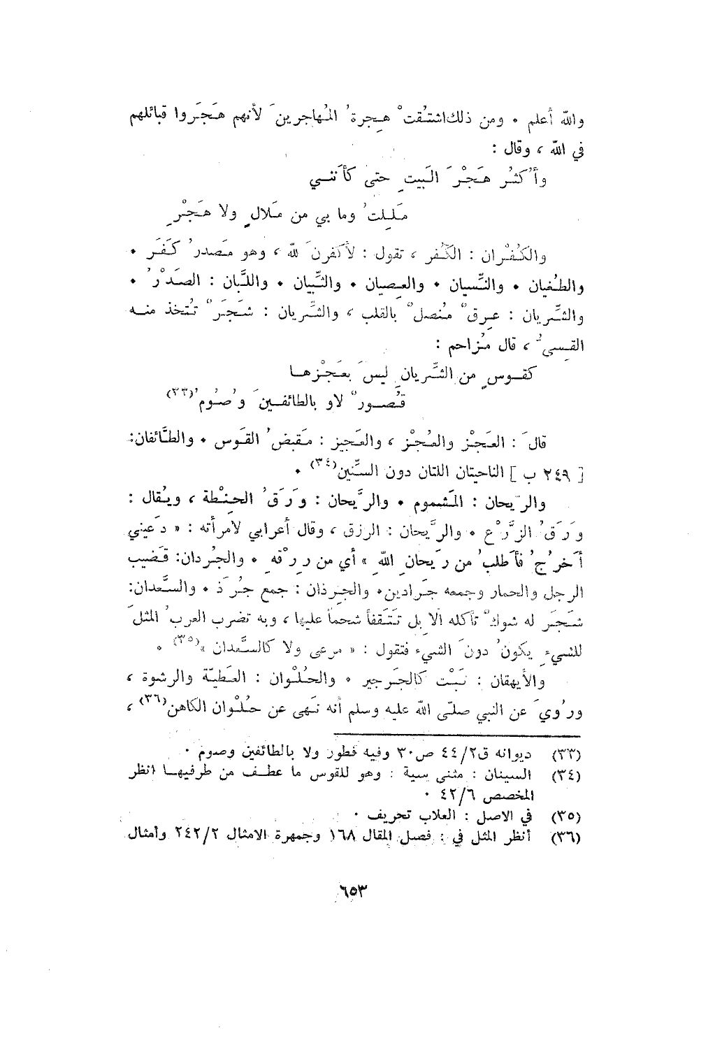 والريحان: المشموم. والريحان: ورق: الحنطة، ويقال: ورق الزرع. والريحان: الرزق، وقال أعرابي لامرأته: " دعيني أخرج فأطلب من ريحان الله " أي من رزقه. والجردان: قضيب الرجل والحمار وجمعه جرادين. والجرذان: جمع جرذ. والسعدان: شجر له شوك تأكله الإبل تتقفا شحما عليها، وبه تضرب العرب المثل للشيء يكون دون الشيء فتقول: " مرعى ولا كالسعدان "
