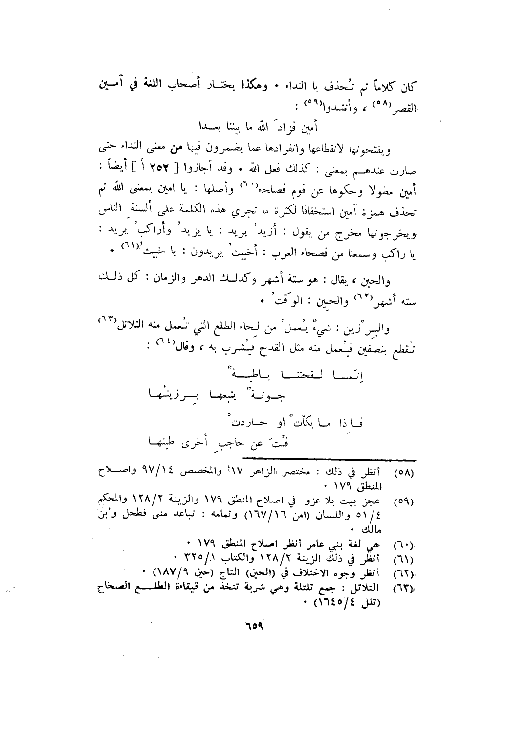 ويفتحونها لانقطاعها وانفرادها عما يضمرون فيها من معنى النداء حتى صارت عندهم بمعنى: كذلك فعل الله. وقد أجازوا أيضا: أمين مطولا وحكوها عن قوم ***** وأصلها: يا أمين بمعنى الله ثم تحذف همزة آمين استخفافا لكثرة ما تجري هذه الكلمة على ألسنة الناس ويخرجونها مخرج من يقول: أزيد يريد: يا يزيد وأراكب يريد: يا راكب وسمعنا من فصحاء العرب: أخبيث يريدون: يا خبيث.