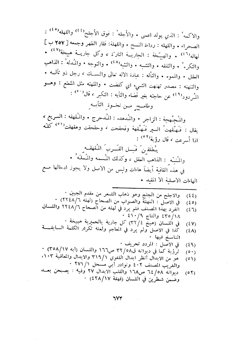 والأكمه: الذي يولد اعمى. والأجله: فوق الأجلح واللهله: الصحراء. واللهله: رداءة النسج. واللهله: فقار الظهر وجمعه لهاله. والهبيخة: الجارية التارة، وكل جارية هبيخة. والتكره. والتفقه. والتشبه. والتثبه. والتوجه. والمدله: الذاهب العقل. والمموه. والتأله: عبادة الإله تعالى والنسك، رجل ذو تأله. والتنهنه: مصدر تهنهت الشيء أي كفضت. والمتهته مثل المتعتع: وهو المردود عن حاجته بغير قضاء والأبه التكبر، قال: