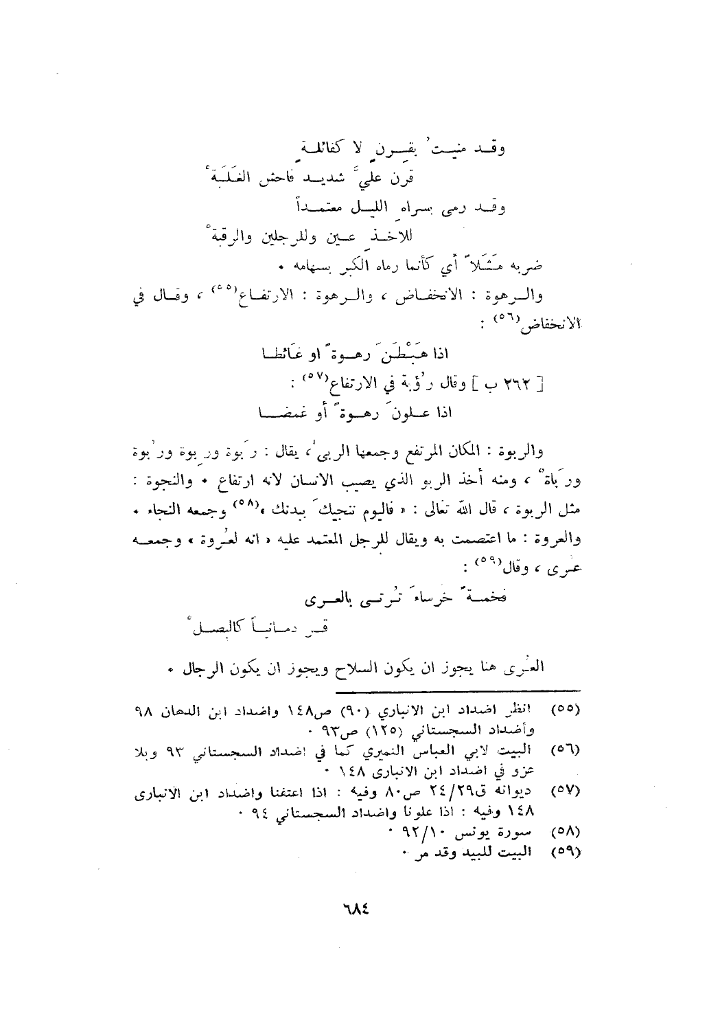 والربوة: المكان المرتفع وجمعها الربى، يقال: ربوة وربوة وربوة ورباة، ومنه أخذ الربو الذي يصيب الإنسان لأنه ارتفاع. والنجوة: مثل الربوة، قال الله تعالى: {فَالْيَوْمَ نُنَجِّيكَ بِبَدَنِكَ} وجمعه النجاء.