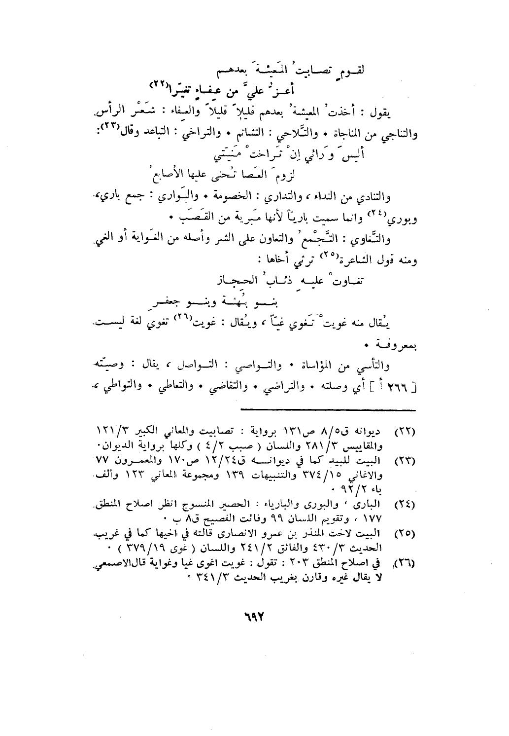 يقول: أخذت المعيشة بعدهم قليلا قليلا والعفاء: شعر الرأس والتناجي من المناجاة. والتلاحي: التشاتم. والتراخي: التباعد وقال: