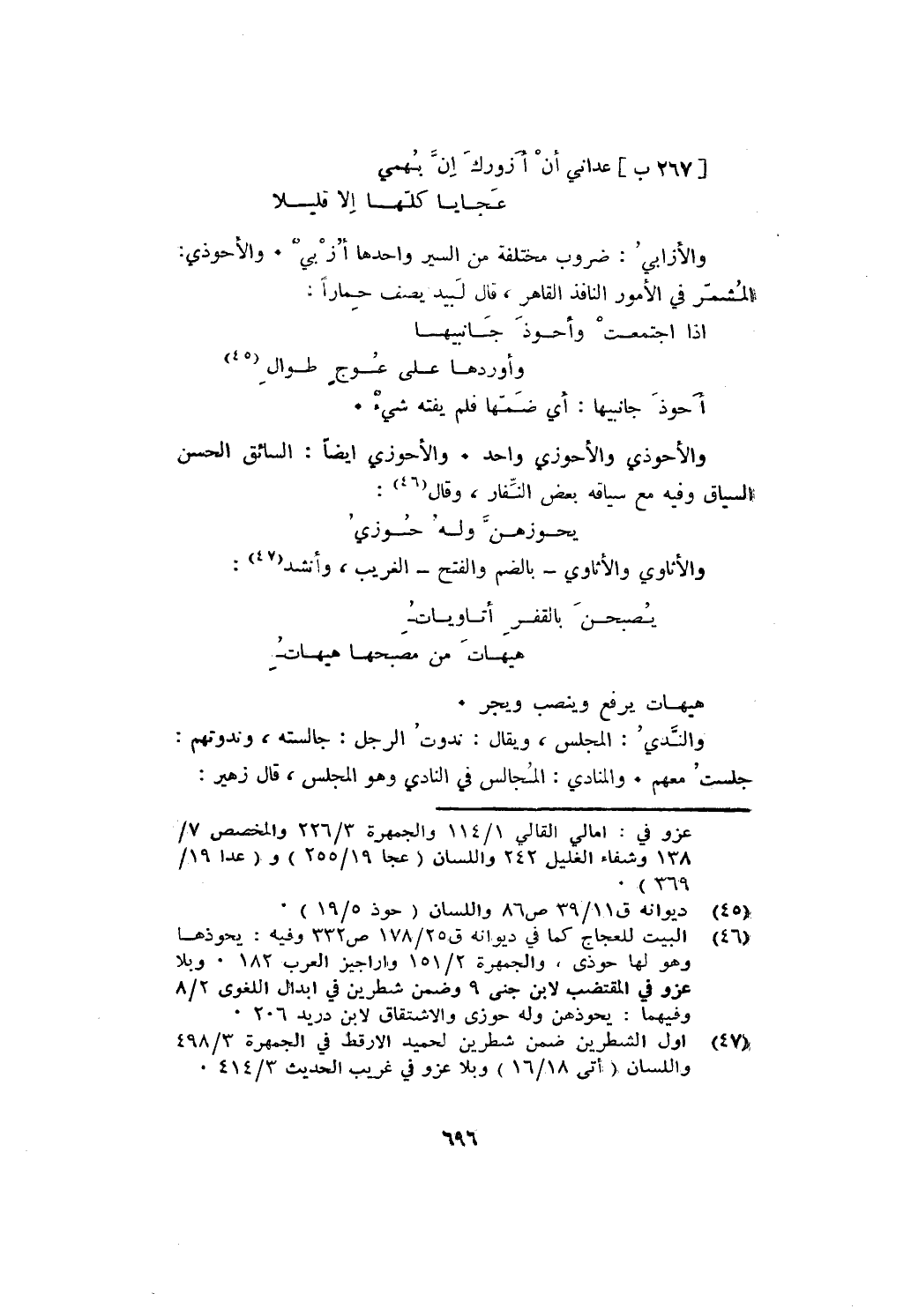 [267 ب] عداني أن أزورك إن بهمي عجايا كلها إلا قليلا