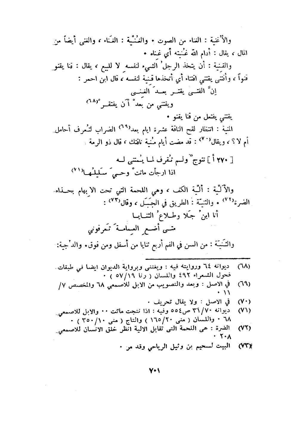 المنية: انتظار لقح الناقة عشرة أيام بعد الضراب لتعرف أحامل أم لا؟ ويقال: قد مضت أيام منية ناقتك، قال ذو الرمة: