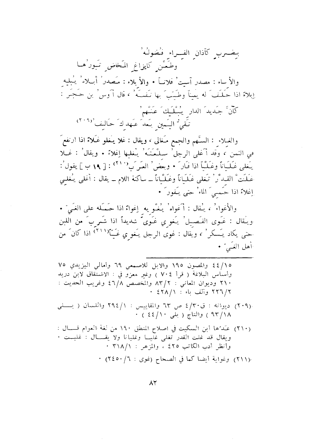 والْغِلَاءُ: السَّهْمُ والجمع مَغَالي، ويقال: غَلَا يَغْلُو غَلَاءً إذا ارتفع في الثَّمَنِ، وقد أَغْلَى الرَّجُلُ سِلْعَتَهُ يُغْلِيهَا إِغْلَاءً. ويقالُ: غلا يَغْلِي غَلَيَانًا وغَلْيًا إِذَا فَارَ. وبعض العرب: [19 ب] يقول: غَلَتِ الْقِدْرُ تَغْلِي غَلَيَانًا وَغَلْيَانًا - ساكنة اللام - يقال: أغلى يُغِلي إِغْلَاءً إذا حَمِيَ الماء حَتَّى يَفُورُ.