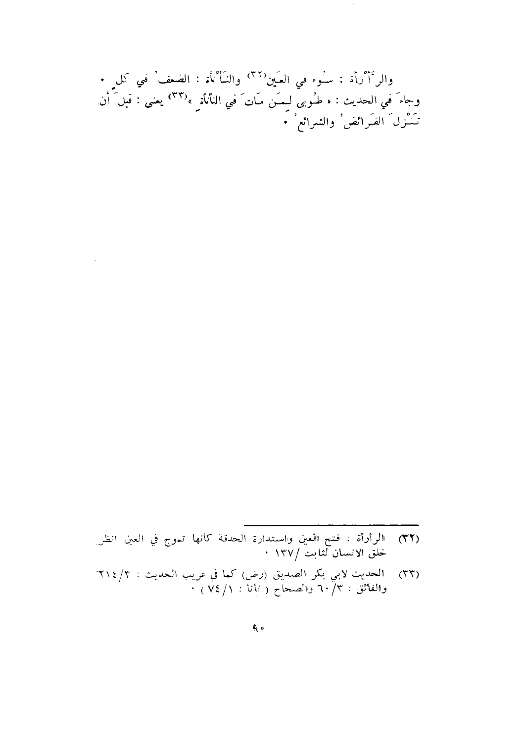 وجاء في الحديث: " طُوبَى لِمَنْ مَاتَ فِي النَّانَأَةِ " يعني: قبل أن تَنْزِلَ الْفَرَائِضُ وَالشَّرَائِعُ.